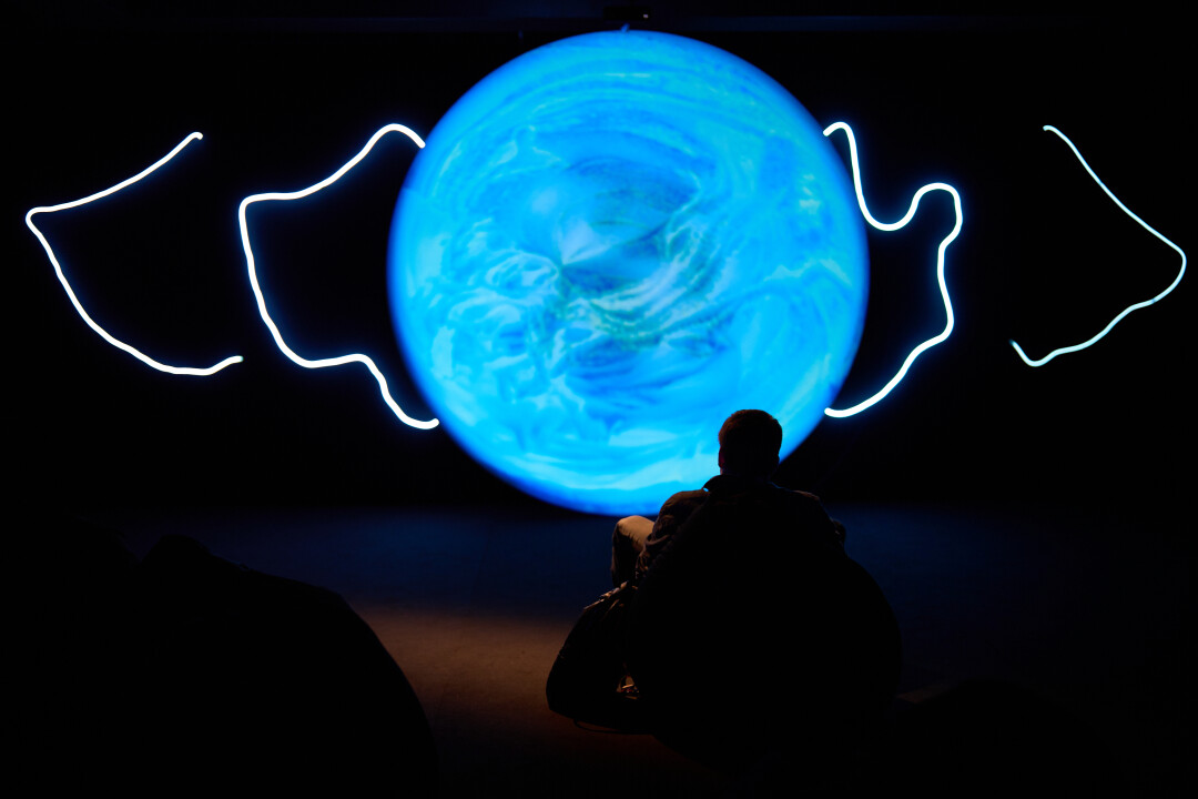 Каждое пространство цифровой галереи согласно кураторскому сторителлингу посвящено отдельной теме: солнечной динамики, происхождению жизни, развитию флоры и фауны, а также возможному будущему планеты. Осуществить эти материальные процессы авторам помогли технологии: генеративная графика, анализ научных данных, работа с нейронками и использование высокоточныч звукозаписей.