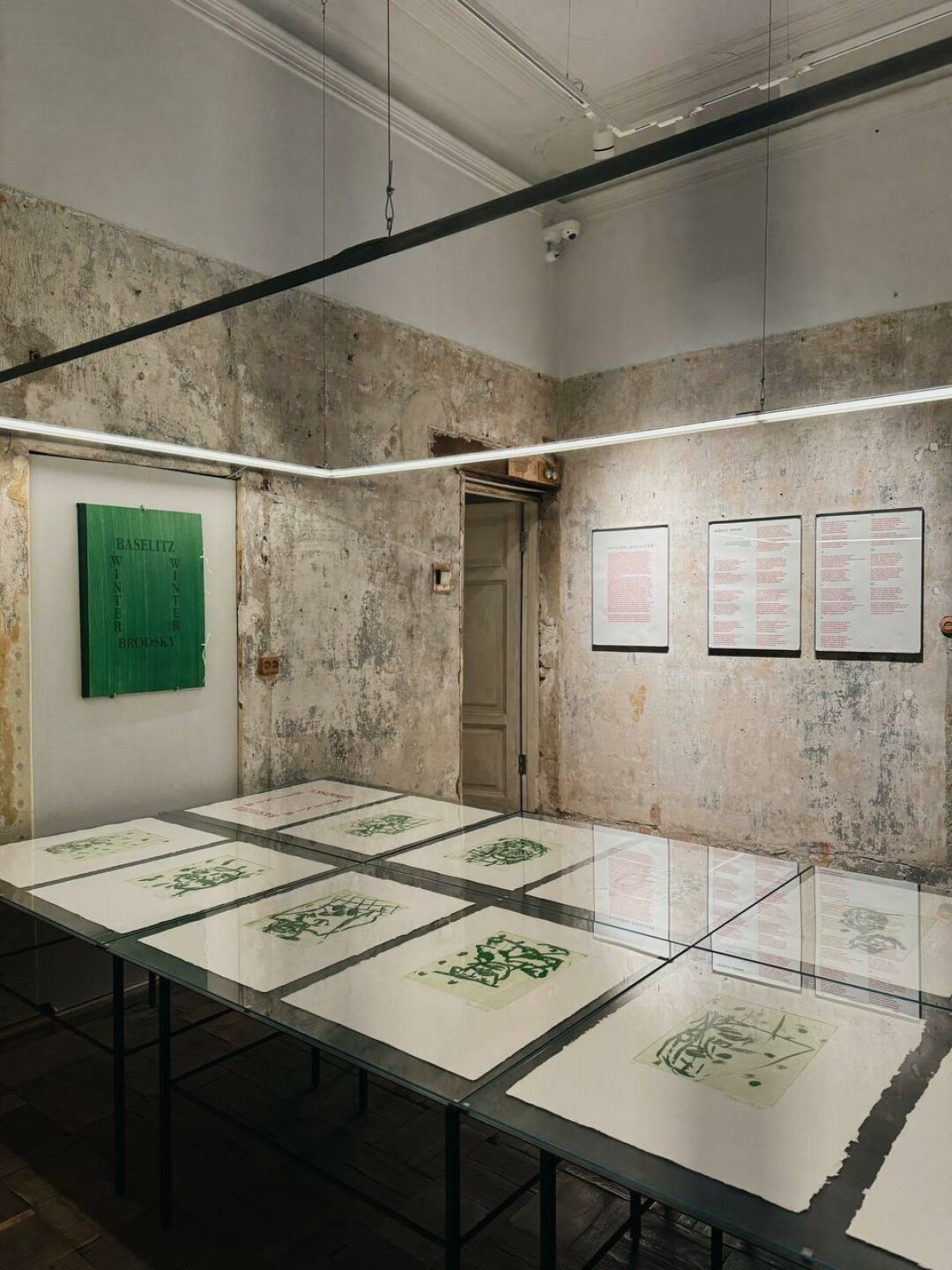 Выставка «Базелиц — Бродский» открыта с 29 ноября 2024 года по 25 февраля 2025 года «Полутора комнатах» на улице Короленко, 14.