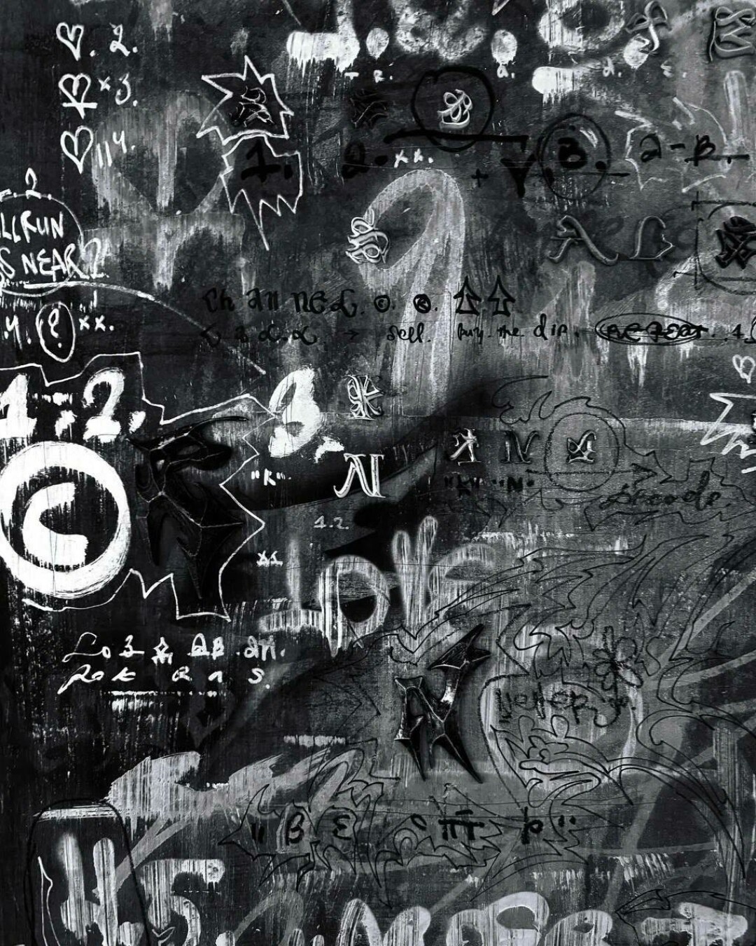 В рамках экспозиции проект демонстрировался в фиджитал-формате — на расписанную рукой художника стену проецировалось цифровое изображение руки, держащей смартфон. В Западной Кордегардии посетители музея увидят каллиграфическое изображение, представляющее тексты диалогов из мессенджеров, без использования видеомэппинга. Основная идея произведения — переосмысление письменности через технологии. В центре внимания — перекрывающиеся слова и фразы, такие как «человек», «знания» и «love», создающие визуальный образ цифровой коммуникации. Работа выполнена с использованием аэрозольной краски, чернил и 3D-печатных элементов.
