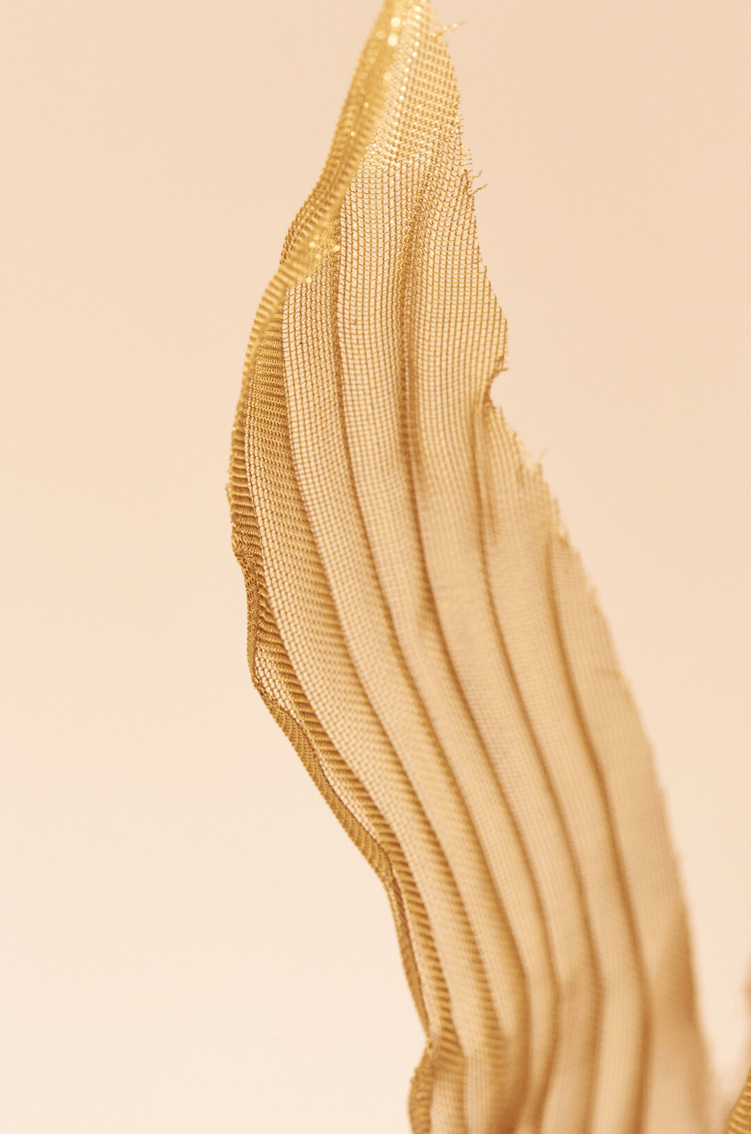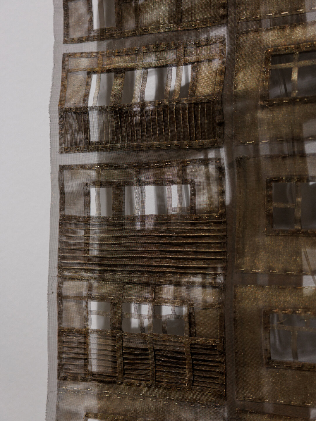 Персональный проект Анны Червонны переосмысляет культурные традиции в современном эстетическом контексте, возвращает к исторической памяти. На выставке представили латунные полотна с ковровым орнаментом. Материал выбран не случайно: в своих работах Червонна использует латунную сетку с ювелирной точностью, превращая ее в подобие кружева. Одновременно автор говорит о хрупкости памяти и прочности региональных традиций. Ранее эти работы экспонировались на ярмарке современного искусства Cosmoscow.