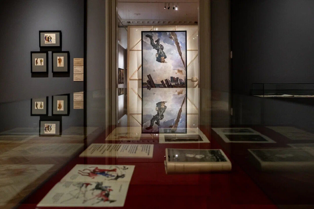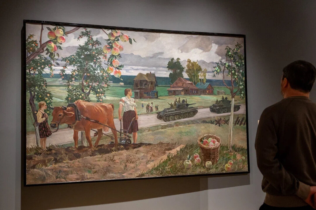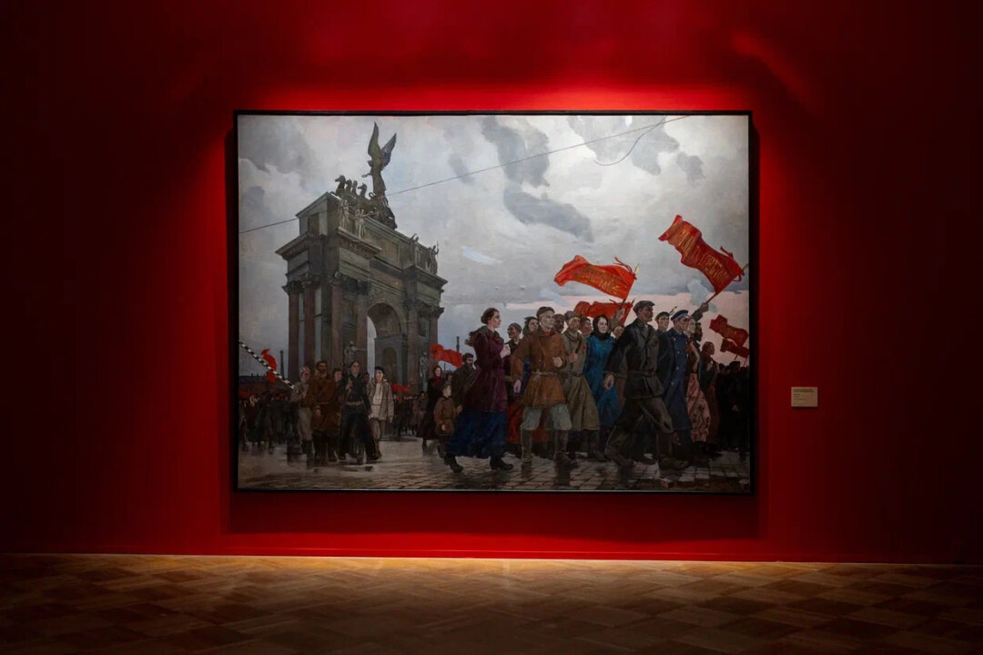 В Корпусе Бенуа можно также увидеть реставрацию монументального полотна Александра Дейнеки «Покорители космоса» из Луганского художественного музея. Понаблюдать за процессом можно в реальном времени в зале №86. Гигантская картина была написанав 1960-х годах аккурат после первого полета Юрия Гагарина в космос. Первоначально полотно создавалось как эскиз к фрагменту будущей многосоставной мозаики, которая должна была украсить московский Дворец съездов. Соцреалистическая композиция «Покорители космоса» отражает основополагающие контексты той эпохи — оптимизм, коллективистское стремление к прогрессу и романтическое представление о будущем.