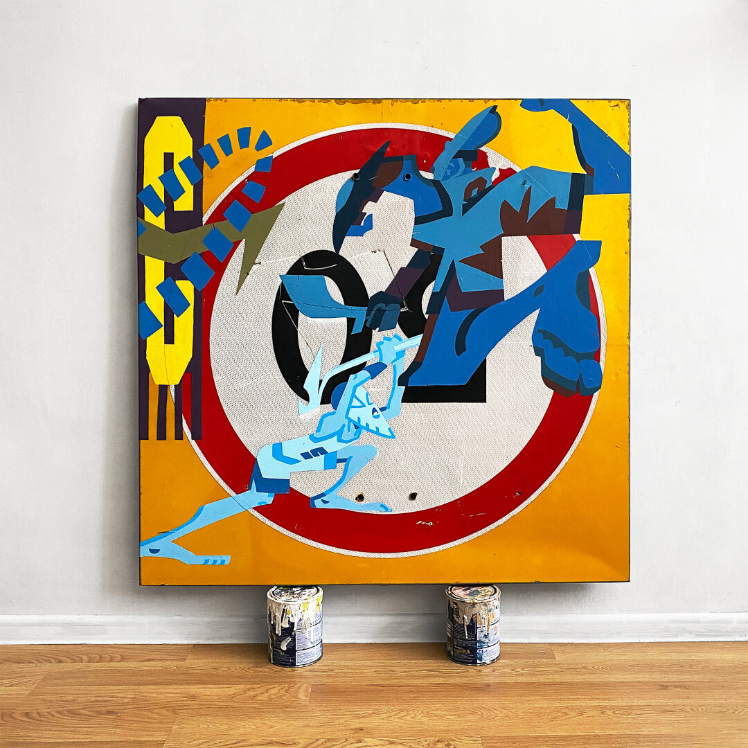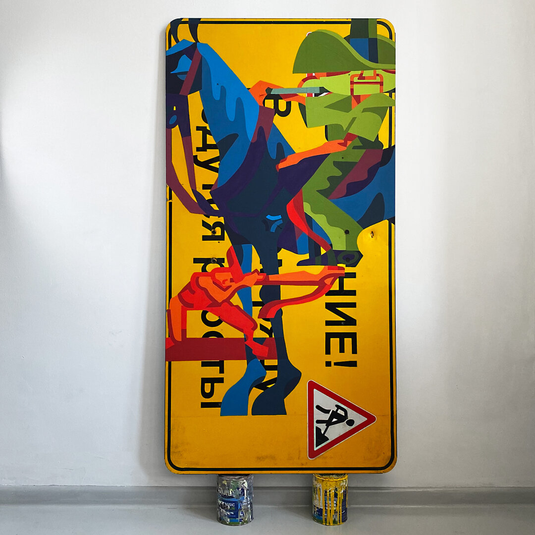 Знакомые персонажи эпосов и легенд сошли с классических произведений на дорожные знаки и хаотично заполонили галерею.