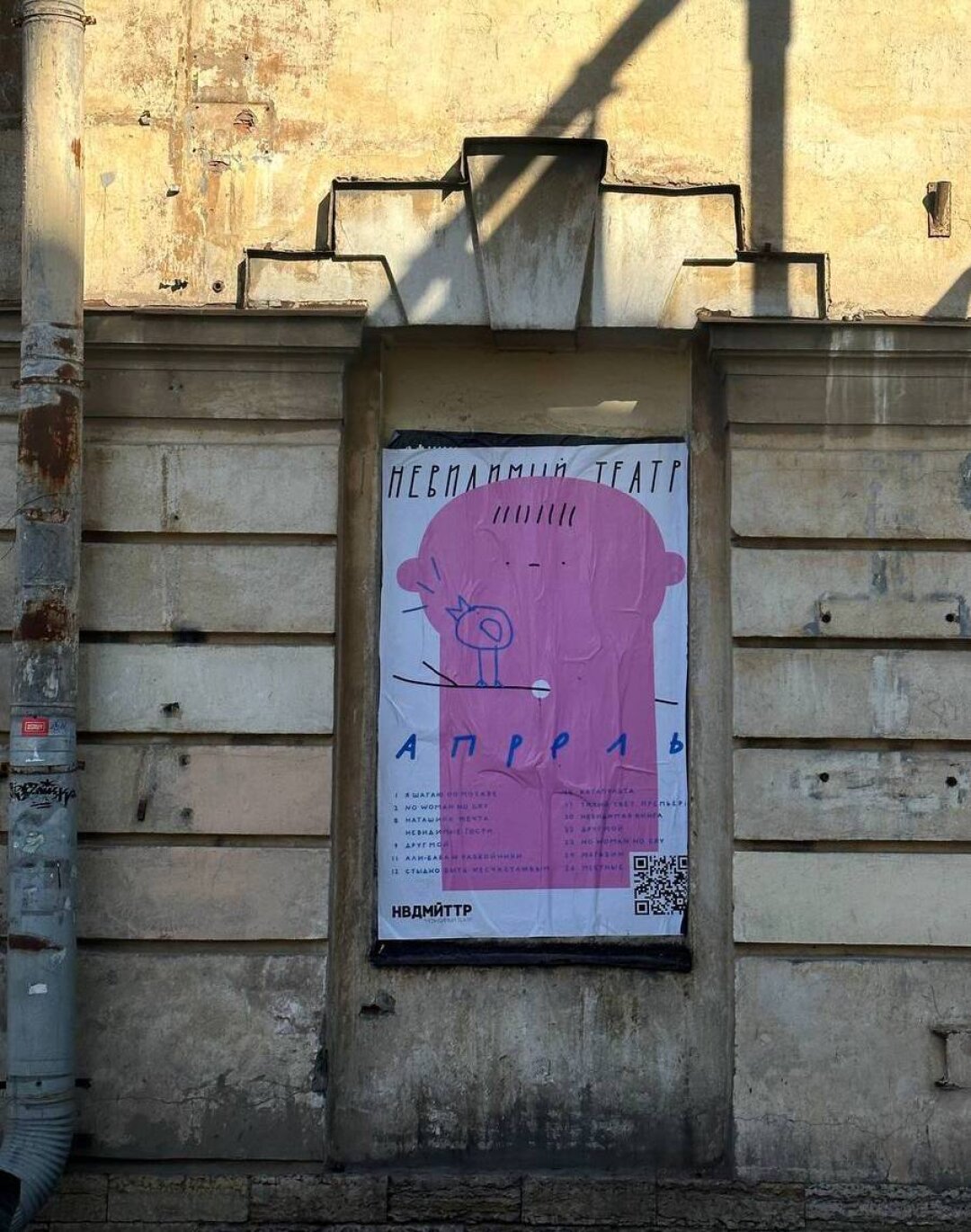 «Невидимый театр» Семена Серзина и самый анонимный художник Петербурга Миша Маркер стали сотрудничать еще год назад. В мае 2024-го на улицах стали появляться афиши с работами стрит-артиста. Этот совместный проект получил логическое продолжение в виде «Невидимой выставки», которая сейчас проходит по всему городу. «Настолько невидимая, что даже мы не знаем, где расклеены афиши», — рассказывают в театре.