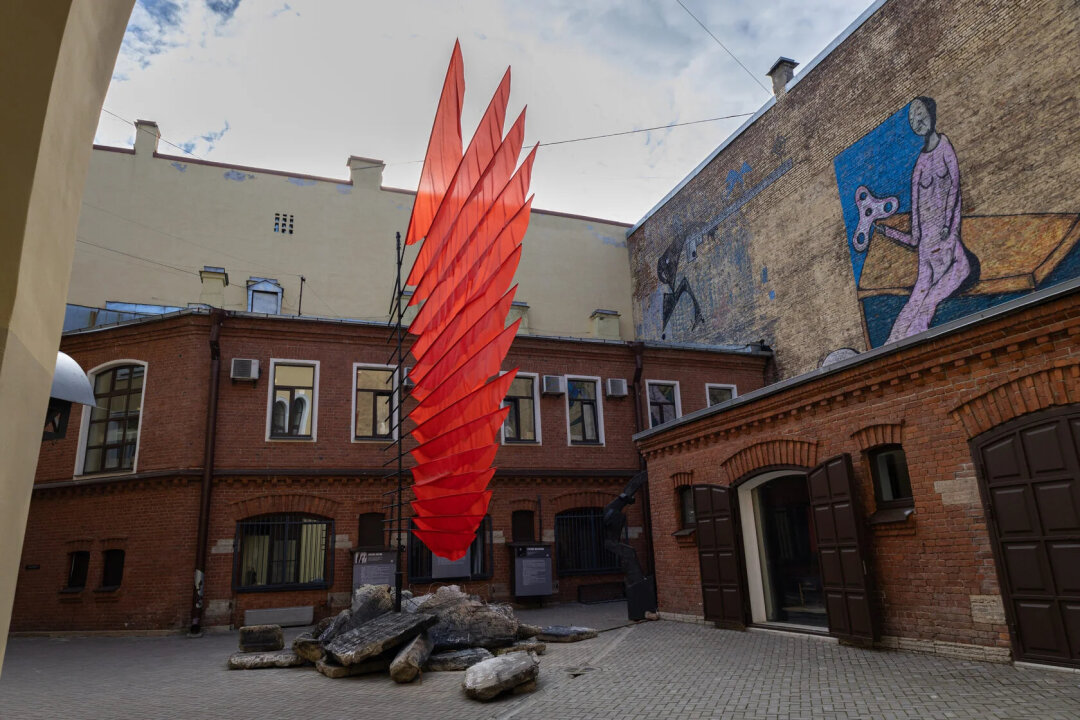 Паблик-арт Алены Коган «Память. Полет. Победа» открыт с 1 мая по 31 августа во дворе Музея искусства Петербурга XX-XXI веков на набережной канала Грибоедова, 103.