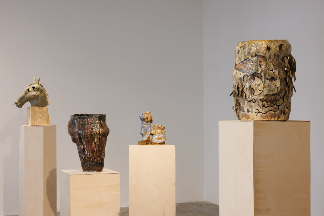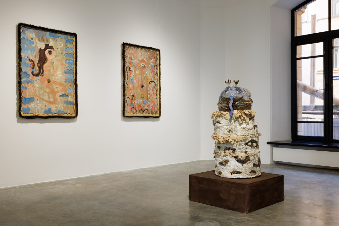 В экспозиции — скульптура, графика и минималистичные акварели объединены идеями коллективности и мистического опыта. Лавингиа создает личные нарративы через созерцание — натурные зарисовки миксуются с лирической «поэтикой мимолетного»: опавшие листья и забытые перья превращаются в «капсулы времени». Ульяна Подкорытова представляет серию работ по итогам резиденции в гималайской долине Кулу (2024), где она работала с темами духовной глубины и мистического опыта. На основе народных практик она выстраивает свою мифологию.
