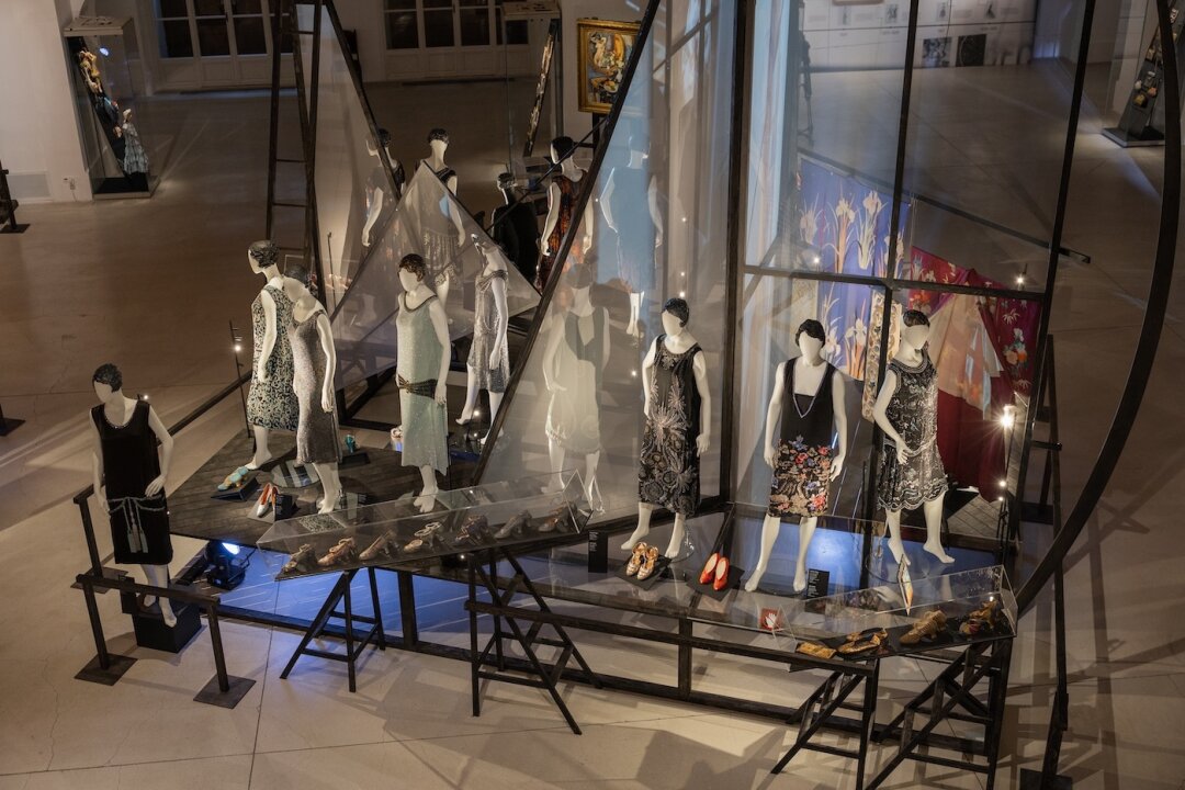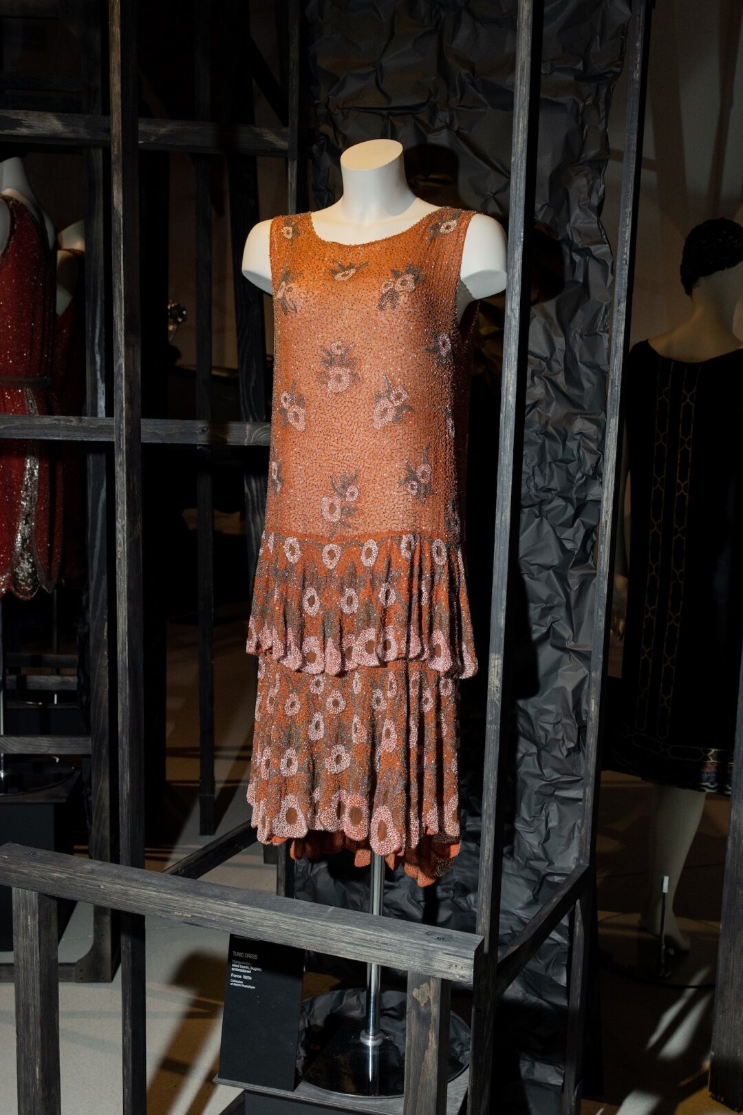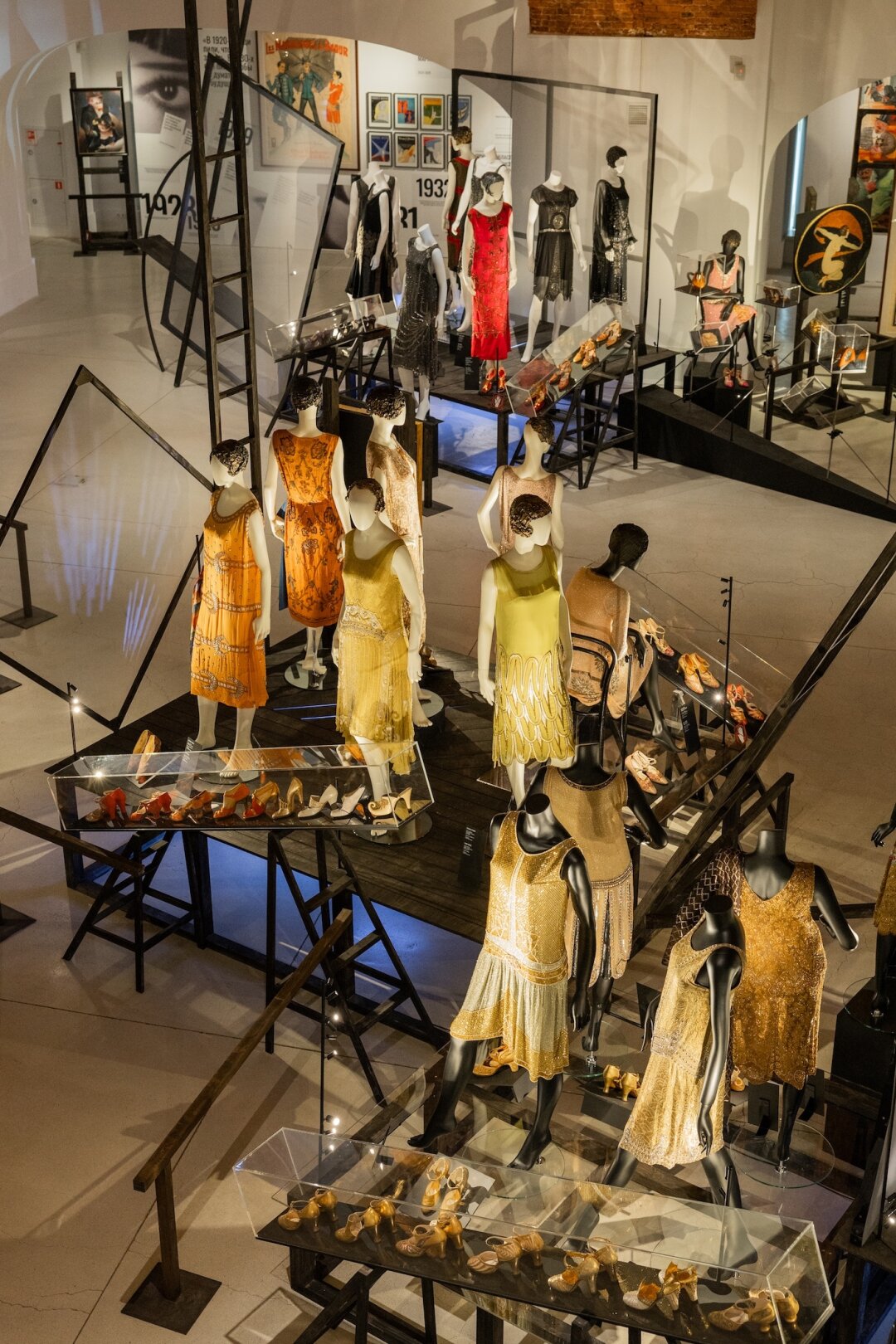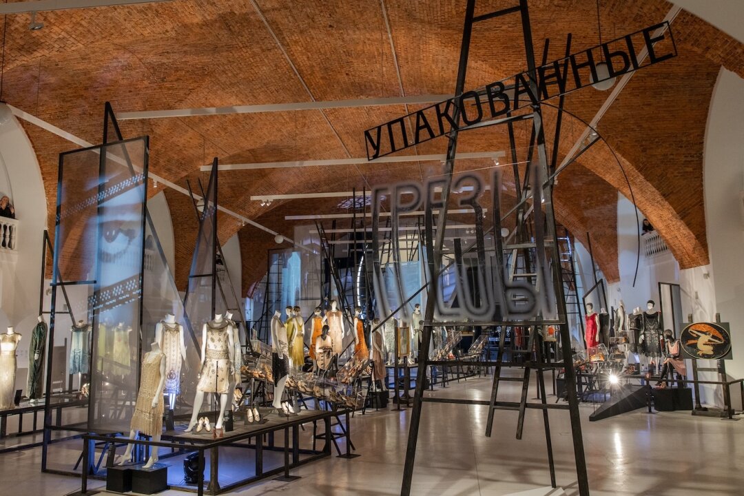 Манеж Малого Эрмитажа сейчас похож на закулисье модного показа или бродвейского театра. Привычное для музеев расстояние между зрителем и экспонатом максимально сокращено — художники не стали прятать в витрины роскошные наряды, ярко сияющие в полутьме выставочного зала узорами из бисера, стекляруса и пайеток. Костюмами, которые с радостью примерили бы современные модницы, можно не только полюбоваться из-за стекла, но и рассмотреть вблизи. А хронологическая лента и стилизованный фильм-реконструкция, снятый Ульяной Пихлак, делают эпоху объемной.