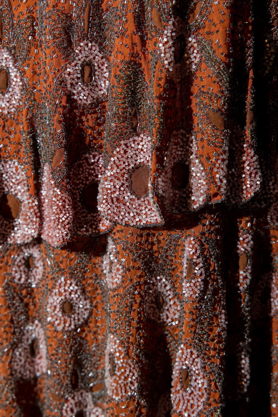 Эти эффектные наряды — бабочки-однодневки, которые сияли не больше пары вечеров. Вместе с бусинами их нередко расшивали желатиновыми пайетками, которые были не способны пережить стирку. Танцевать в них тоже было непросто: платья весят по три-четыре килограмма.