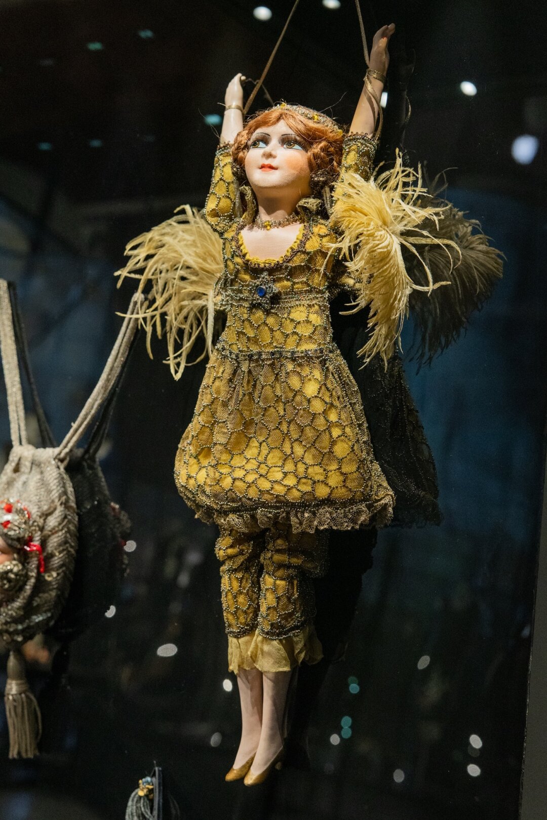 На выставке можно увидеть и будуарных кукол. Их предоставила музею Ирина Углинская. Есть среди экспонатов и аксессуары, вдохновленные «кукольной лихорадкой», их привезли в Петербург Павел Карташев и Вадим Полубоярцев.