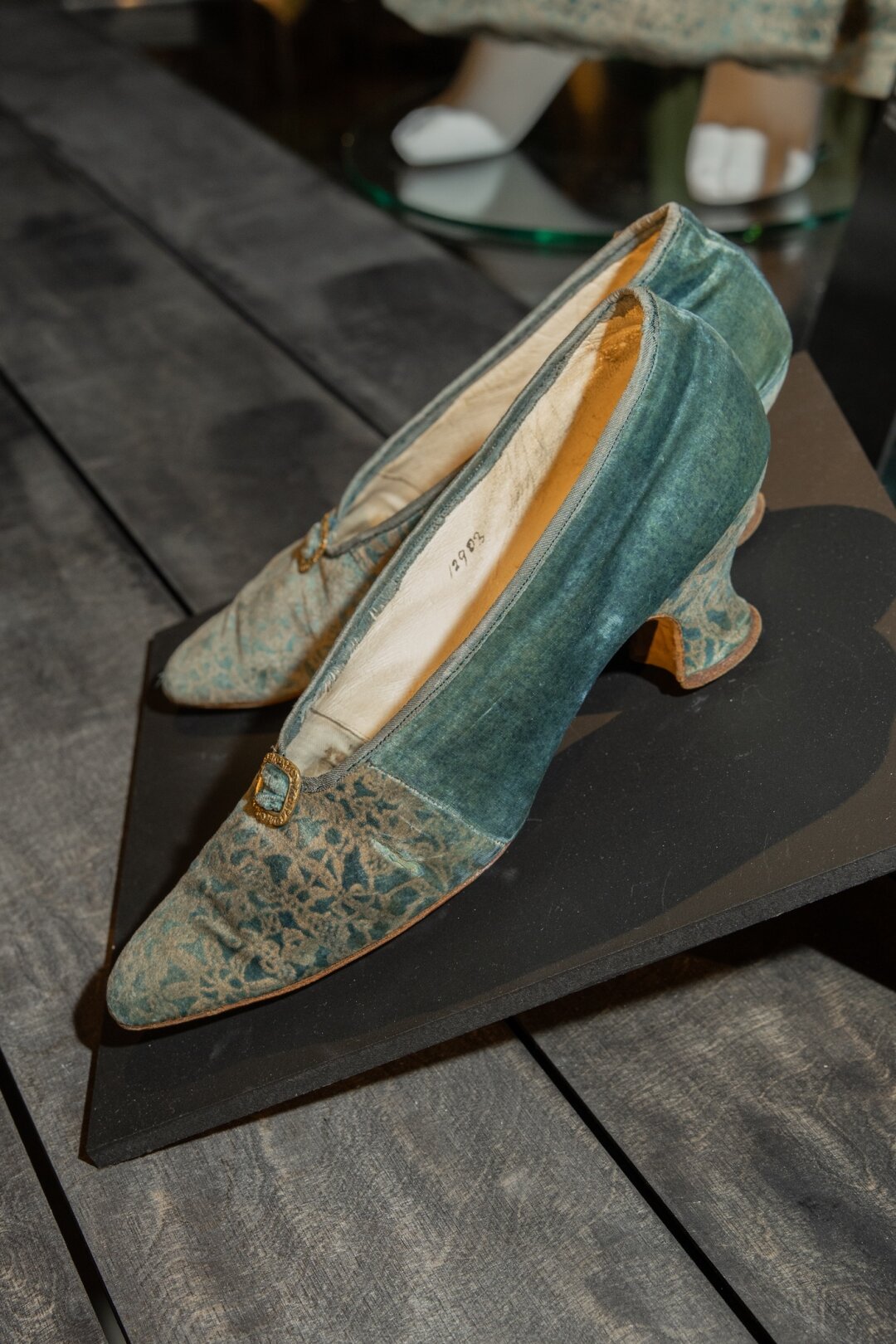 Пьетро Янторни называл себя самым дорогим обувщиком в мире. Все туфли он шил самостоятельно, поэтому покупатели могли ждать заказ по три года (!), но качество обуви было настолько высоким, что клиенты были согласны на все условия мастера. На выставке можно увидеть две пары лодочек от Янторни из синего шелка.