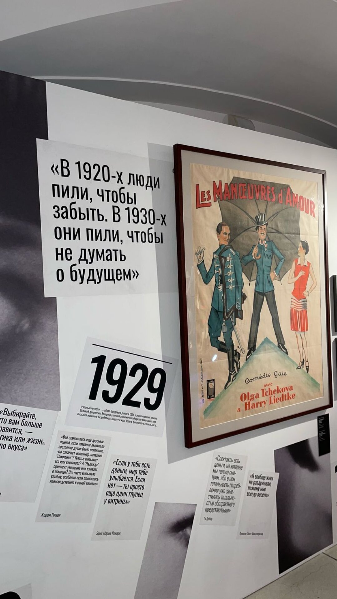 Экспозиция рассказывает о коротком промежутке между двумя войнами (интербеллум). Таймлайн четко очерчен: он начинается с даты подписания Версальского договора и завершается приходом к власти в Германии национал-социалистической немецкой рабочей партии. Хронология сопровождается высказываниями мыслителей того времени: Бодрийяра, Хаксли, Ремарка, Фицджеральда.