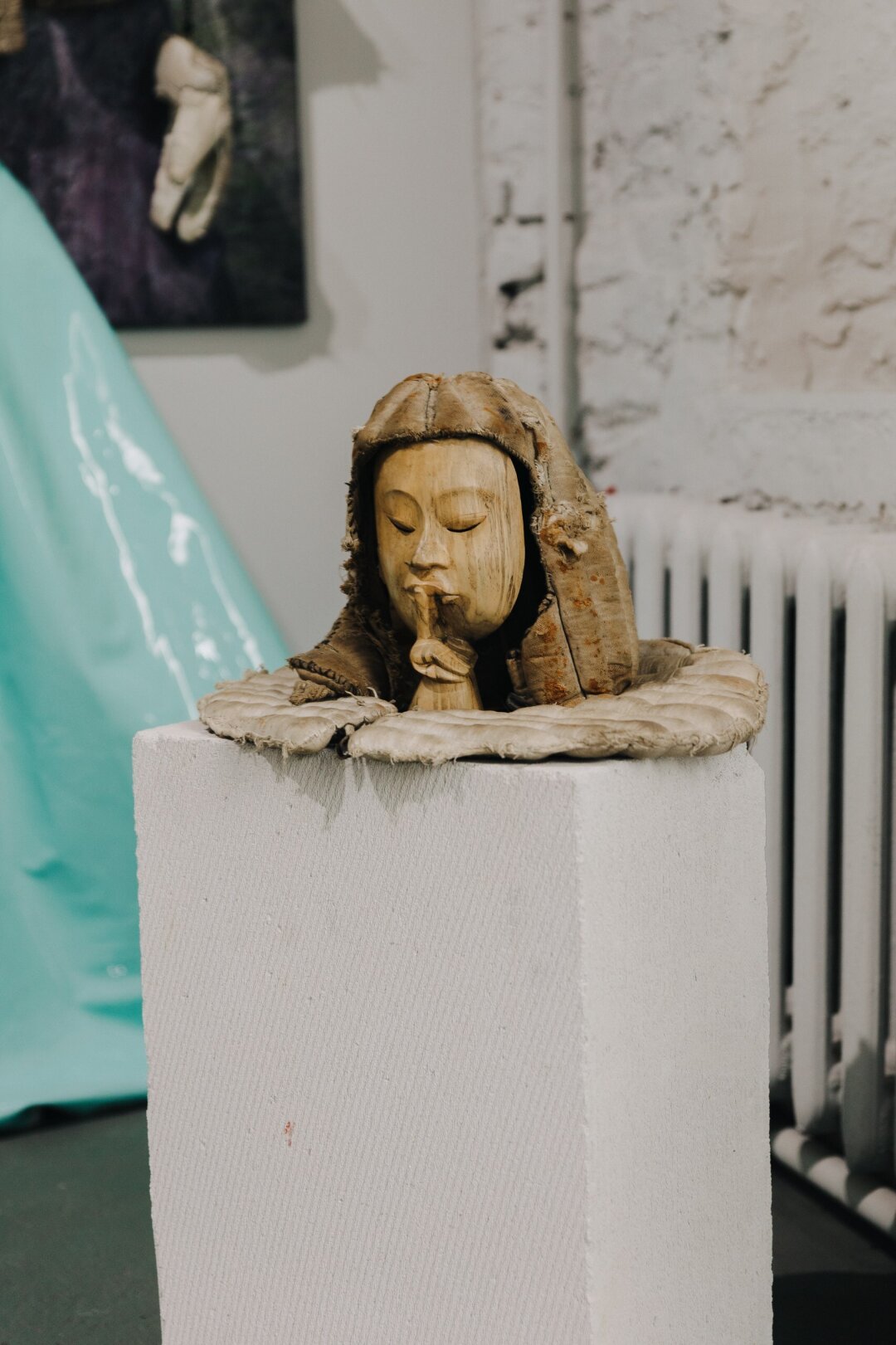Название Sobo переводится с японского как бабушка. Это альтер эго Саши [Цикаришвили] и наш тотемный символ. С одной стороны, это что-то семейное, личное, частная история. С другой — общее, хтоническое и народное. Баба-яга — персонаж, который соединяет два мира: живых и мертвых. Это священный, ритуальный проводник, который возникает у Саши в перформансах. И здесь она не просто бабушка, а именно японская. В каком-то смысле это отсылка к идеям тропикализма, которые у нас присутствуют в последних выставочных проектах и «Цветах Джонджоли» (арт-объединение. — Прим. ред.).