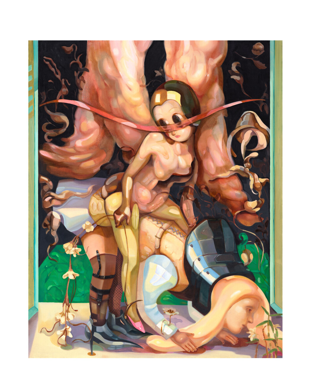 До 30 сентября в галерее совриска Cabinet Abstract работает персональная выставка китайской художницы из Чэнду Рики «Новый телесный ритуал». В ее основе — разговор о «теле, как о текучей сущности подчиняющейся внешним стандартам и желаниям»: думскроллингу в соцсетях, потребительству, навязанным идеалам красоты. Как технологии влияют на внутренний мир человека? Что если тело перестало быть «реальным», и где границы фантазии? В основе этой идеи — conatus — концепция Спинозы о единстве тела и разума.
