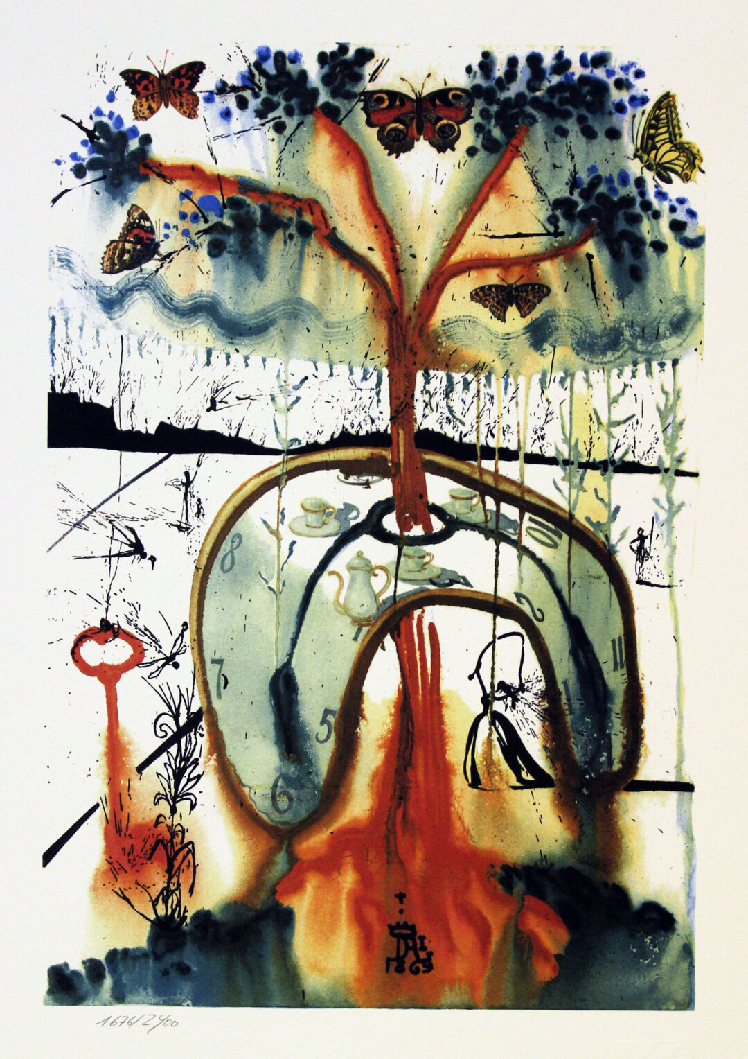 12 иллюстраций (по числу глав) к книге Льюиса Кэррола «Приключения Алисы в Стране Чудес» вышли в 1969 году в нью-йоркском издательстве Press-Random House. А в 1984 году литографии выпустили отдельным тиражом. На гуашевых рисунках художник изобразил Алису со скакалкой в руках, весело прыгающую с одного красочного листа на другой. Позднее этот же образ Дали использует в литографиях «Путь к запредельному» и «Путь к мечте».