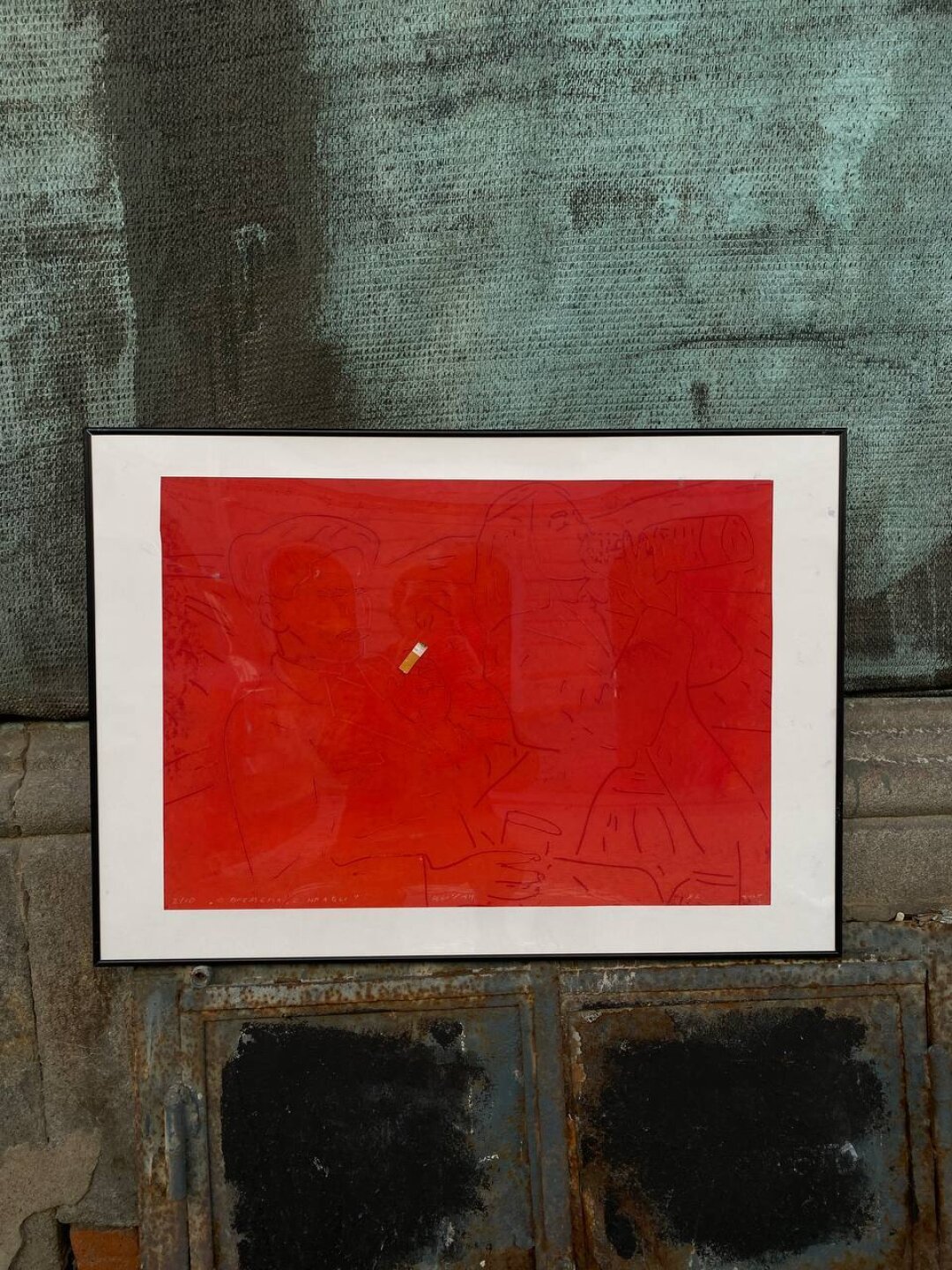Большинство работ созданы специально для выставки. Цыган обращается к смешанной технике: акрилу, типографской краске, пастеле и текстурной пасте.