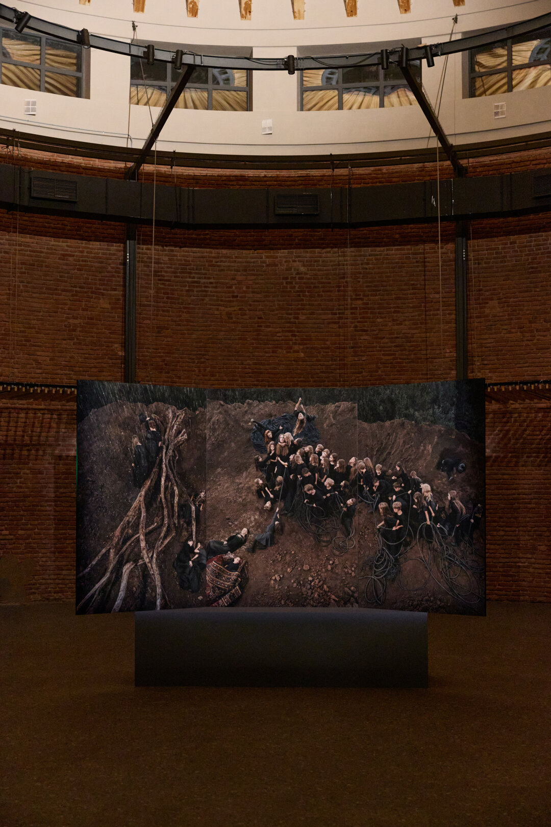 По задумке, работая над монументальным четырехметровым полотном авторы исследовали малоизученную «перформативную скульптуру» — форму искусства, которая существует на стыке классической пластики и современных практик, может включать интерактивные и кинетические элементы, а также провоцировать создание событийного пространства.