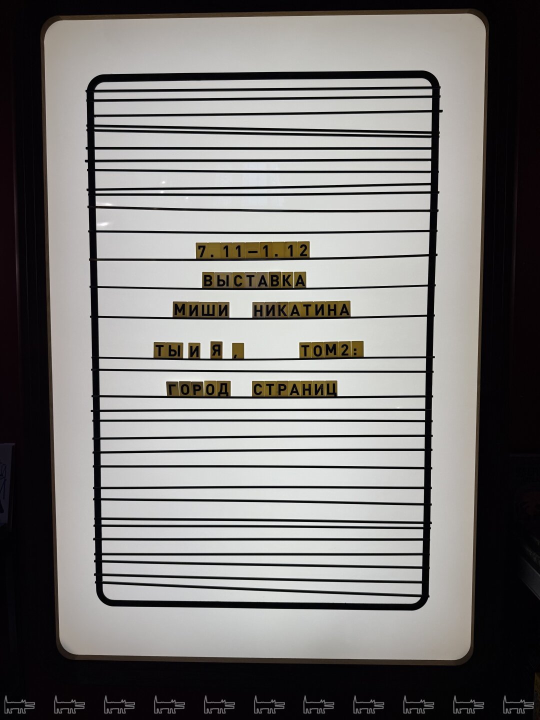 Персональная выставка Миши Никатина «Ты и я, том второй: Город страниц» открыта с 7 ноября по 1 декабря 2025 года в «Подписных изданиях» на Литейном проспекте, 57.