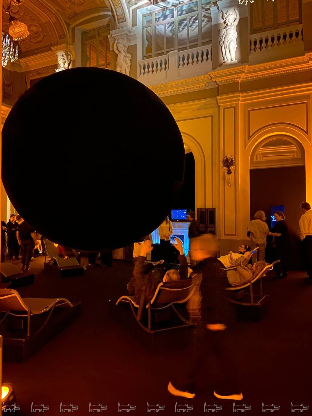 «8.12» — это парящая в воздухе светонепроницаемая сфера. Вокруг нее — восемь кресел, сидя на которых зритель вступает в непосредственный контакт с арт-объектом, становится его триггером. Любое микродвижение оппонента переводится в уникальный звуковой сигнал, который далее становится частью меняющейся оркестровой партитуры. Подобная коммуникация между зрителем и искусством подчеркивает «креативный потенциал человеческого восприятия».