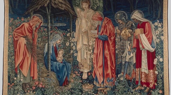 Среди ключевых экспонатов — три масштабные работы, каждая со своей историей: Уильяма Морриса «Поклонение волхвов», вытканная на его мануфактуре по картону Эдварда Берн-Джонса, дипломатический подарок Александр III cтол «Флора Лотарингии» Эмиля Галле. Их дополнит оригинальный письменный стол Анри ван де Вельде — бельгийского архитектора, развивавшего идеи Морриса.