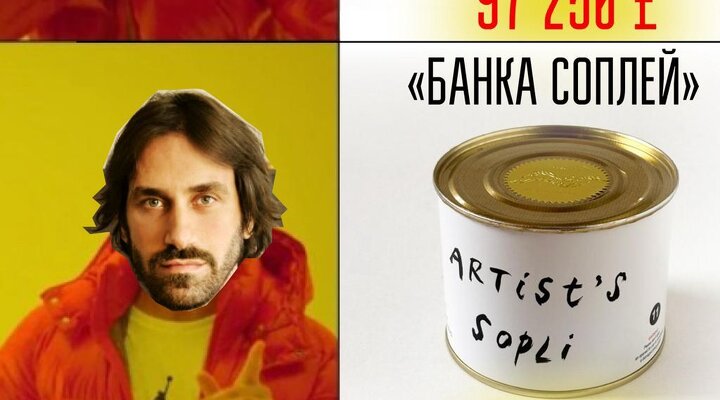 Спустя более 60 лет российский художник Сергей Бондарев представляет современный оммаж знаменитой работе. Его объект «ARTIST’S SOPLI» («Сопли художника»), созданный в 2025 году, продолжает диалог о природе искусства, его цене и границах. В жестяную консервную банку (высота 8 см, диаметр 10 см) помещена салфетка, пропитанная, согласно описанию, «натуральными соплями художника Бондарева». Минималистичная белая этикетка с небрежной рукописной надписью отсылает к эстетике оригинала, но меняет «субстрат» творчества.