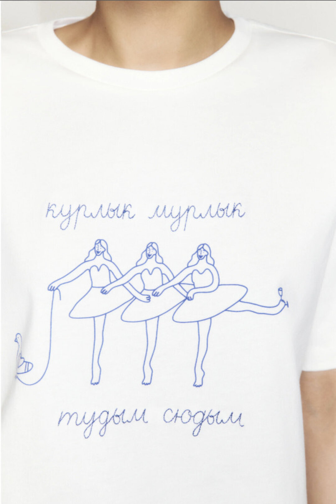 Так, петербургская художница Пана в свойственном ей ироничном ключе обыграла узнаваемый «Танец маленьких лебедей», добавив к композиции намеренно абсурдную надпись. В такой футболке просмотр новогодних шоу и сериалов станет одновременно нарядным, уютным и артовым!