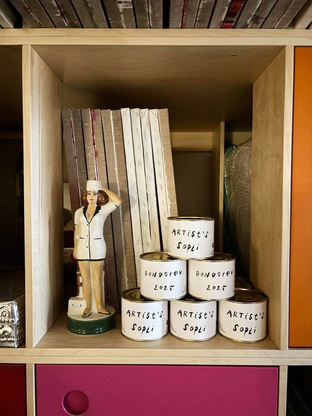Если у вас ироничное настроение, вы хотите покритиковать современное искусство как конвейер по производству вещей. Ну или просто: ваш одариваемый — фанат Пьеро Мандзони, а на его работу «Дерьмо художника» скопить к концу года не удалось, то ловите вариант от петербургского художника Сергея Бондарева. Результаты последней простуды в виде салфеток, в которые сморкался, он разложил по консервным банкам, лаконично надписанным «Artist’s sopli».