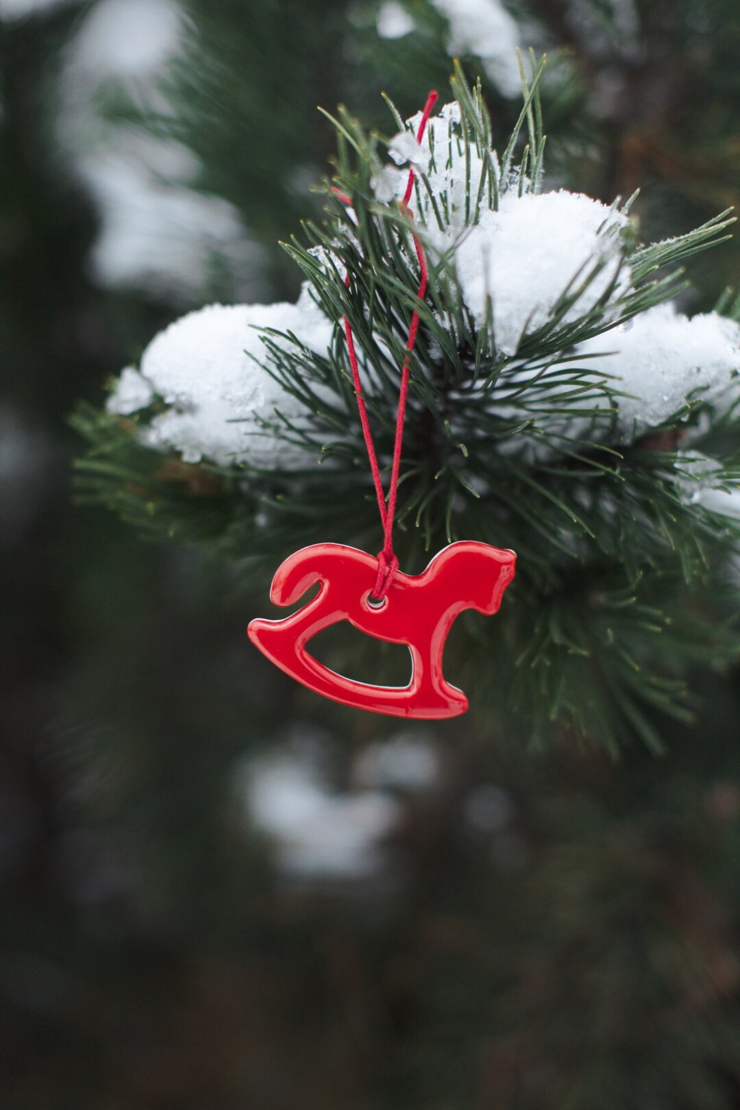 Больше лошадок богу лошадок! Малышка в версии от «Простых вещей» мила и лаконична и выполнена в цвете, которому позавидовал бы сам Петров-Водкин. Также мастерские предлагают повесить на елку зайчика, собачку, петушка и варежку.