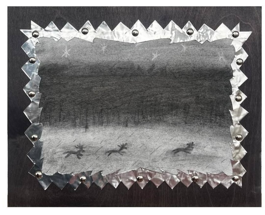 Участник «Сообщества Современных Сибирских Художников» обычно делает яркие забавные картинки, изображая обитателей городских окраин. Но к зиме Паша Пошукай несколько помрачнел, взялся за уголь и заключил свои работы в колкие «снежные» рамочки. Это не совсем про новогоднее настроение, скорее — о возможности почувствовать, что не у тебя одного начинается депрессия от слишком короткого светового дня. И напомнить себе: это процесс хоть и регулярный, но проходящий.