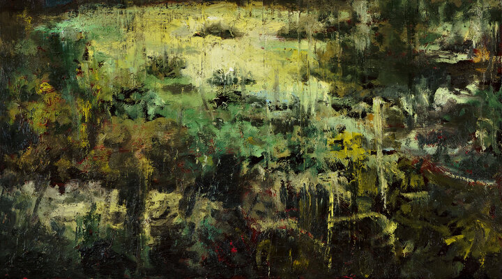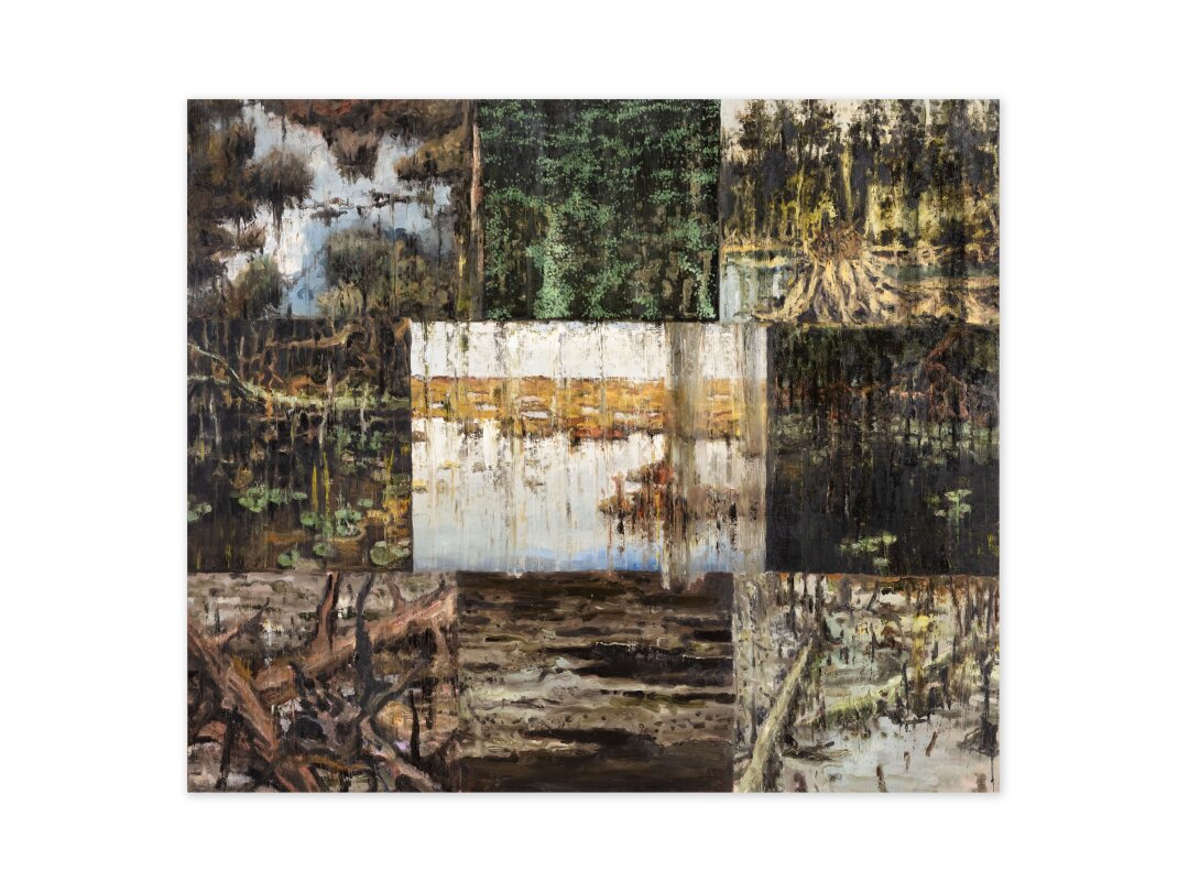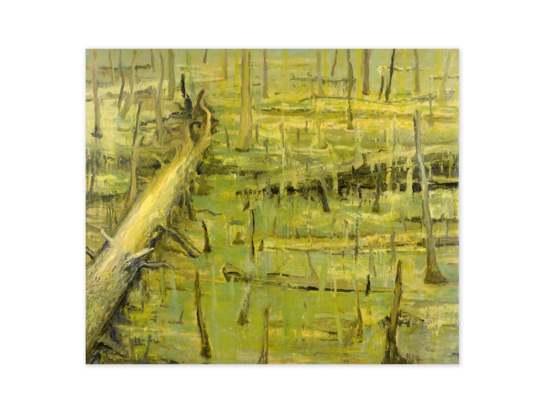 За 15 лет многое изменилось в арт-контексте, и в сегодняшнем прочтении темы Швецов создает гораздо более живописные — в изначальном смысле этого слова — работы. Образ заболоченной местности становится для художника полем эксперимента, где живопись сталкивается с собственными границами — материальными, институциональными и символическими. Новое обращение к серии фиксирует сдвиг: живопись больше не оправдывается и не атакует сама себя, а утверждает собственную автономию. Болото превращается в пространство авторефлексии, где накопленные за годы приемы, мотивы и образы складываются в уверенное, зрелое живописное высказывание. Ощущение зыбкости и ожидание неожиданного жеста по-прежнему остаются неотъемлемой частью этой территории.