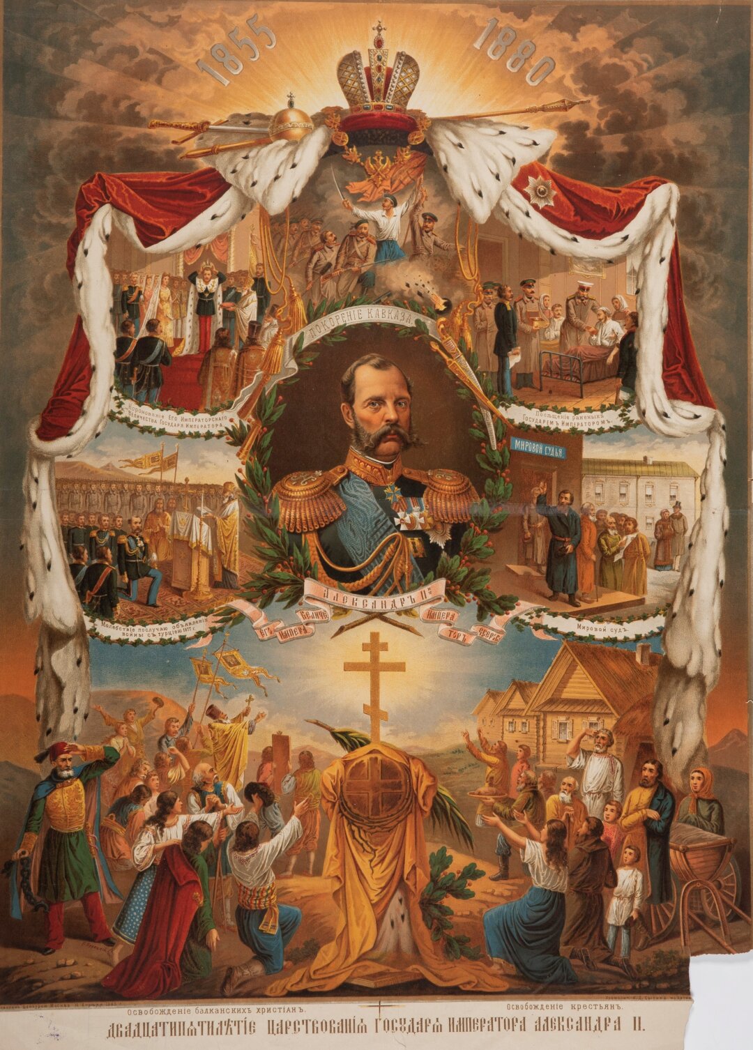 Александр Николаевич взошел на престол в возрасте 36 лет после смерти Николая I, в разгар Крымской войны. В правление Александра II прошли преобразования, получившие название «великих реформ»: ликвидация военных поселений (1857), отмена крепостного права (1861), финансовая реформа (1863), реформа высшего образования (1863), земская и судебная реформы (1864), реформа городского самоуправления (1870), реформа среднего образования (1871) и военная реформа (1874). Изменения решили ряд наболевших социально-экономических проблем и ускорили развитие капитализма в России, но император не довел реформы до конца. При этом многие нововведения периода 1855–1881 годов, такие как суд присяжных и местное самоуправление, дожили до наших дней.