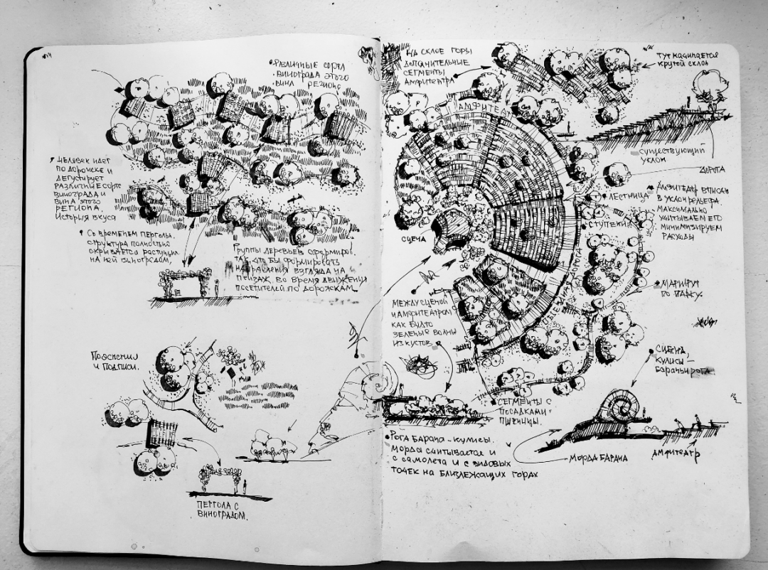 Да, безусловно, у Атаянца, например, совершенно невероятный рисунок. Но проектировщик может этим навыком и не обладать. Рисунок, с моей точки зрения, обслуживающая структура. В проекте одновременно присутствует куча разных экспертов. Художник здесь просто один из маленьких незначительных элементов. Поэтому проектировщик не должен тратить свой потенциал, чтобы научиться рисовать изощренно. Тут помогает моя техника скетчинга. Суперпростая, но эстетичная. Она строится на том, что из рисования убрано все, что может не работать. Например, не надо рисовать в перспективе. Вообще. Только вид сверху, сбоку и фронтальный. Этого достаточно, чтобы описать проектную идею. А если ты начинаешь рисовать в перспективе, то втрое усложняешь процесс. И многие архитекторы рисовать не умеют, они на это забили и проектируют.