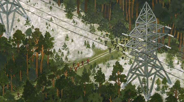 Петербургский художник Павел Назим работает с разными техниками: тушь, карандаш, ретушь и офорт. В «инженерной графике», как называет свое искусство автор, он исследует отношения человека и природы через призму доброй иронии и любви.