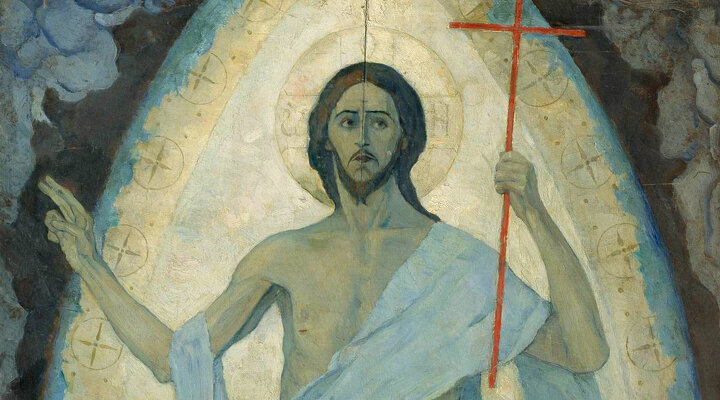 Михаил Нестеров — последователь школы религиозной живописи Васнецова. Художник работал над мозаикой «Воскресение Христово» на фронтоне северного фасада Спаса на Крови. Полотно 1922 года по тому же сюжету стало последней работой Нестерова на тему религии — закономерно в контексте атеистических кампаний советской власти.