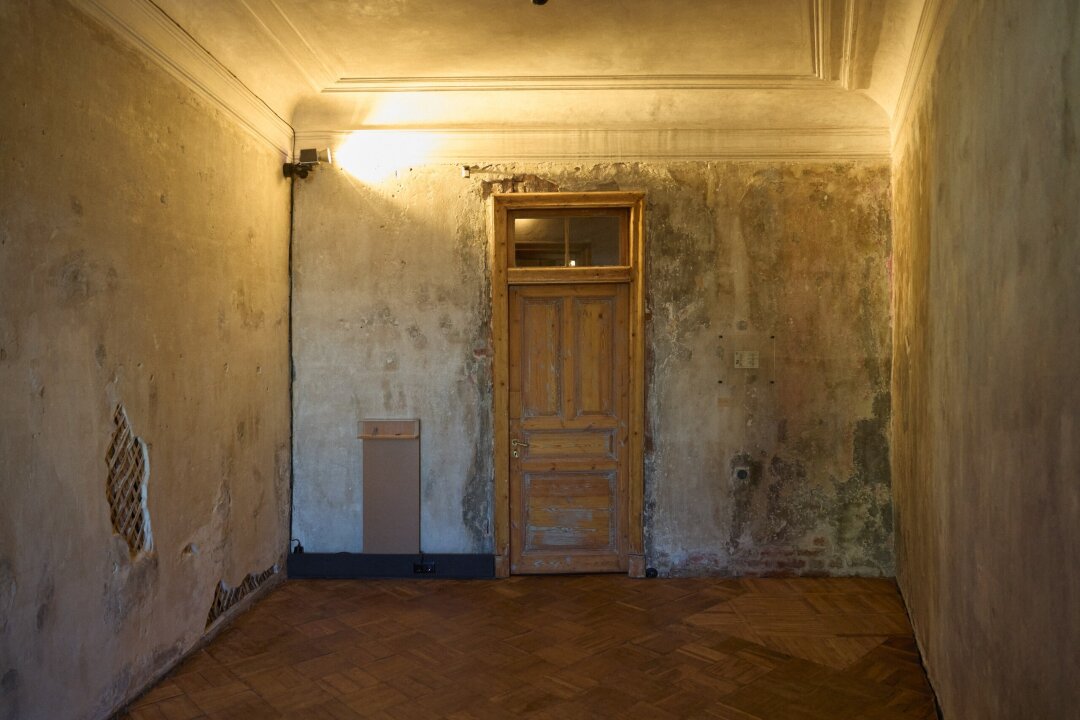 После этих приготовлений зрители оказываются на кухне. Здесь нет экспонатов в привычном понимании этого слова, ими становятся сами стены и сохранившаяся со времен Введенских печь, с помощью которых кураторы (Юлия Сенина и Ирина Горлова) рассказывают о реставрации квартиры. Эта история продолжается в ванной комнате, где плавают оставшиеся после первой выставки рыбки, а еще разложены найденные в помещении предметы с 1930-х годов до последнего времени и даже фотография последней местной обитательницы по имени Флорида.