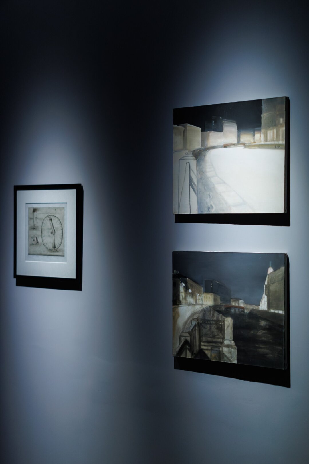 Город, как и современник, по кураторской задумке предстает двуликим. С одной стороны, это театрализованное, в лучших традициях петербургского мифа пространство, где житель предъявляет себя окружающим; с другой — «злая сила», где за людьми следит городовой (не путать с новым ИИ, хотя...), и человек вынужден закрываться, избегать идентификации, воспринимая как «свои» только маргиналии — подвалы, свалки, территорию под мостам.