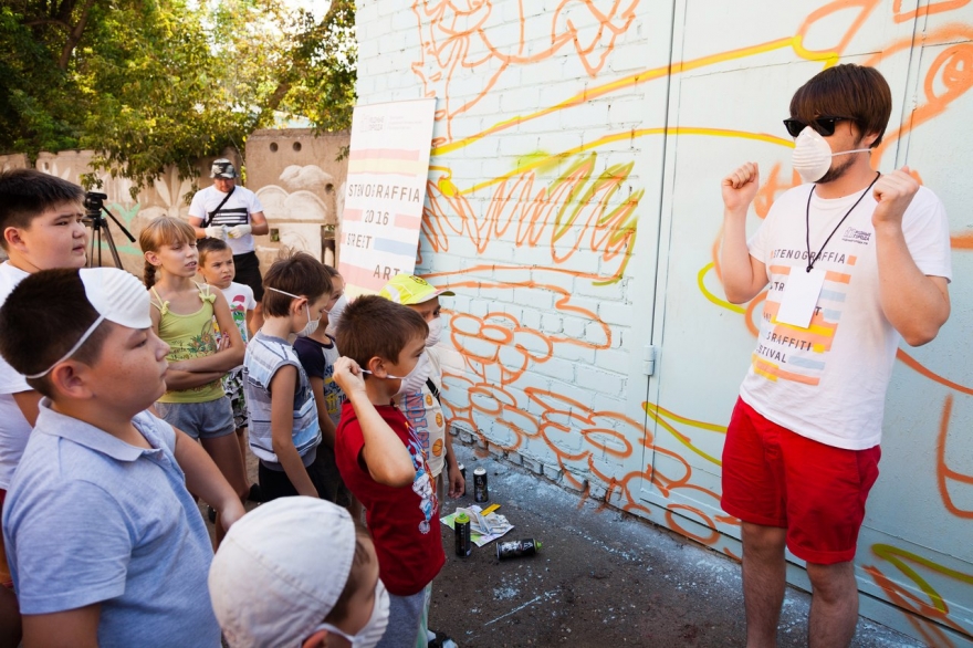 Кроме того, Андрей Колоколов, один из создателей фестиваля и арт-директор агентства Streetart, научил детей управляться с многослойными трафаретами и создавать сложные рисунки простыми способами. Ребята весело и задорно измазались в краске и довольно быстро освоили технику. Граффитчики шутили, что через несколько лет Оренбург непременно накроет волна новых талантливых художников. И наконец, в завершение этого насыщенного дня взрослые и дети посмотрели вместе последние серии «Смешариков» и новый мультик «Тима и Тома».