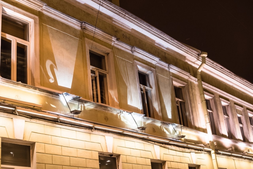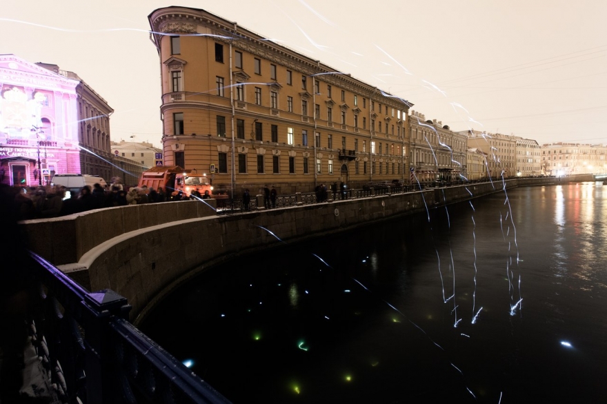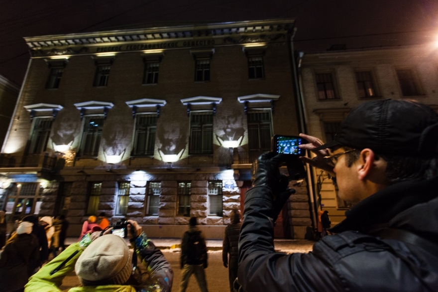 «Мы не хотели рисовать в Петербурге аэрозольными красками. Во-первых, это архитектура. Каждый дом — памятник, в каждом доме кто-то жил… И мы разработали уникальный проект рисования светом. Между собой мы называем это волшебством».