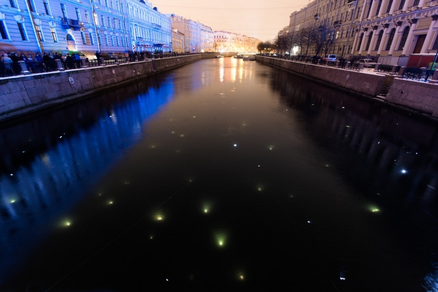 Если в суровых городах и поселках Заполярья темой фестиваля, тронувшей за живое и участников, и зрителей, стали «Теплые стены», то в Петербурге огромный душевный отклик получила акция «Звездный путь». Жителям больших городов редко удается полюбоваться звездами — поискать знакомые созвездия или просто помечтать, глядя на небо, а Петербург к тому же часто затянут туманом, тучи висят низко. Получается эдакая «звездная недостаточность». «Стенограффия» решила исправить положение и хоть ненадолго подарить горожанам звездное небо, а точнее — его отражение в завораживающих каналах.