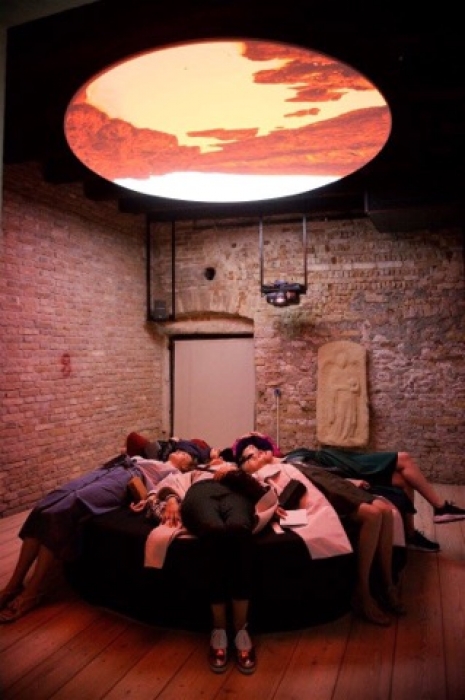 В воскресенье круговой экран доверят петербургскому объединению Tundra, в который входят видеохудожники, музыканты, звукоинженеры и программисты.Они впервые покажут интерактивную инсталляцию «The Void. Прототип 2». С 14:00 она будет работать в общем режиме, а в 20 вечера пройдет ее презентация. Пустота – это социальный эксперимент: как долго человек может находиться в состоянии покоя. Любое движение улавливается чувствительным оборудованием, и тогда панорамная видеопроекция со звуком обрывается. Музыкальный ряд для инсталляций создавали постоянные участники команды Tundra — группа D-Pulse.