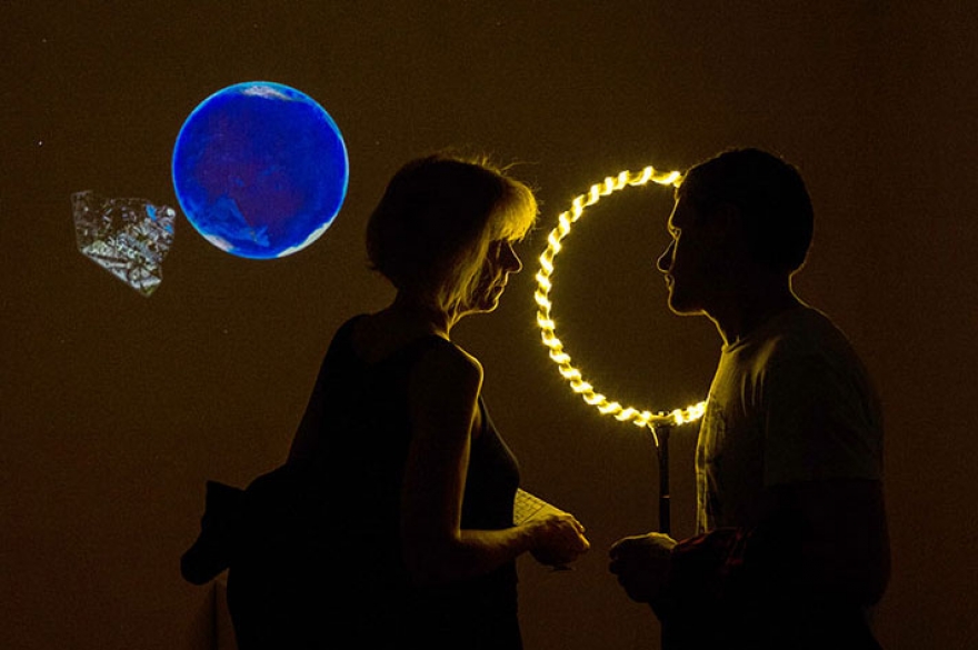 Живущая в Бельгии российская художница подготовила проект совместно с медиалабораторией CYLAND, активным участником которой является. Интерактивная инсталляция использует технологию распознавания лиц. Если посетитель зол или нахмурен, то на Землю, которая транслируется на экране, начинает надвигаться объект, напоминающий Зиккурат. Если спокоен и улыбается – катастрофа минует, и космический объект проплывает мимо.