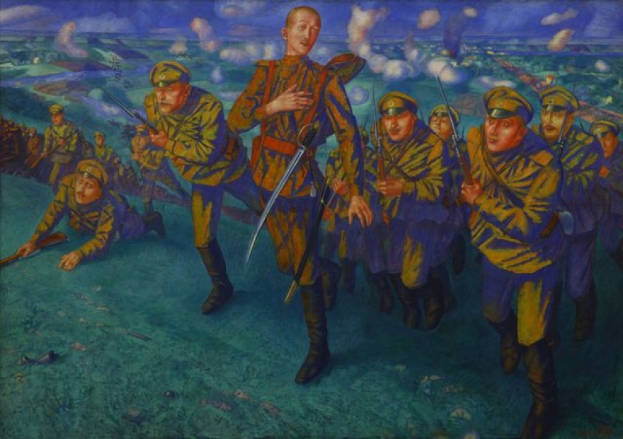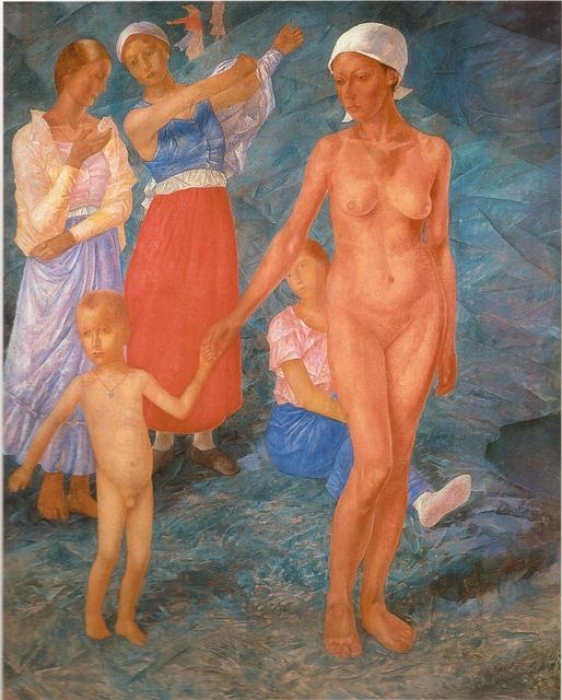 В 1911 году он вступает в модное эстетское объединение «Мир искусства», а годом позже напишет свое программное произведение — «Купание красного коня» — апофеоз символизма и вместе с тем полотно глубоко русское и бунтарское. «Гимном Аполлону» и «взрывом чудовищного смятения» назвал картину искусствовед и художник Александр Бенуа. Хрупкий обнаженный юноша, взнуздавший исполинского алого коня, — источник огромного количества интерпретаций: от прямолинейно фрейдистских версий до трактовок в духе текстов современного культуролога Александра Эткинда, усмотревшего в грандиозной символике солидарность с преследуемыми апокалиптическими сектами, хлыстами и скопцами — многие из которых поддержат пожар обеих русских революций.