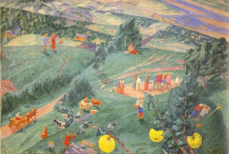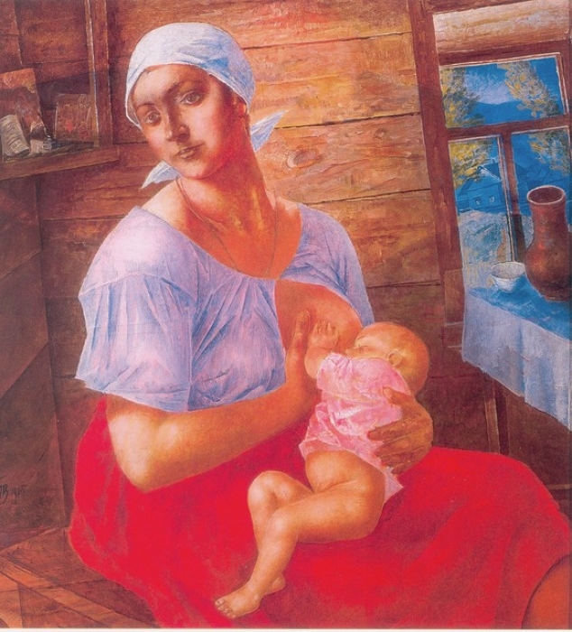В отличие от многих современников, Петров-Водкин никогда не изображал зло, отвратительную сторону существования, удручающую дисгармонию. Он всегда оставался певцом утопии — будь то эсхатологической или социальной. Впрочем, как считают исследователи, для художника апокалипсис и революция не были чем-то разным. В этом смысле он своеобразный Андрей Платонов в живописи. Пример этого синтеза — картина «1918 год в Петрограде», которую очень скоро стали называть не иначе как «Петроградской Мадонной». Хаос, голод и насилие первого советского года он выразил надмирным образом матери, кормящей младенца, — тысячелетний иконописный лик выписан на фоне совершенно по-импрессионистски окрашенных петроградских зданий, на которых обыватели читают декреты новой власти.