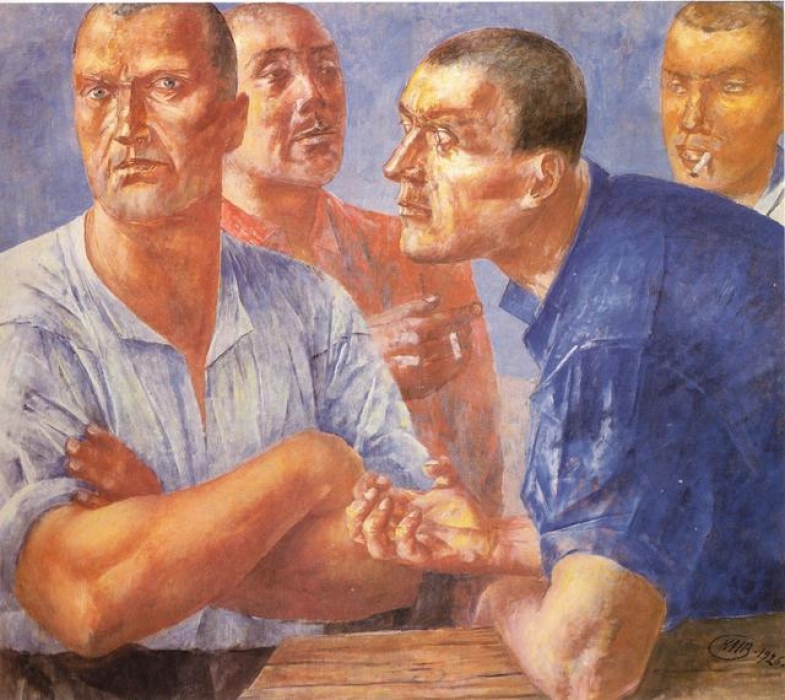 Карьера одного из самых самобытных и «диких» русских модернистов — пример не русской, а скорее американской мечты о self-made man: сын сапожника вырвался из поволжских низов на вершины современного ему искусства. Начал 15‑летний Кузьма как ученик иконописцев — эти технические и эстетические принципы так и останутся в его беспокойном творчестве порой отчетливыми, а местами едва проглядывающими элементами.