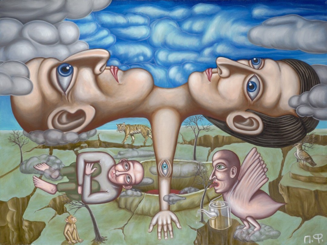 Экспозиция в Русском музее впервые представляет Пестовых как единый творческий союз. Метод пестовских полотен – конечно, гиперреализм, когда написанные маслом на холсте, например, куски разделанного мяса (работа «Жир», 2010), кроссовки Reebok c пятнами крови («Автепати», 2017) или орущие младенцы в раме из бинтов («Биоматериал», 2010) отчетливее любого документального изображения.