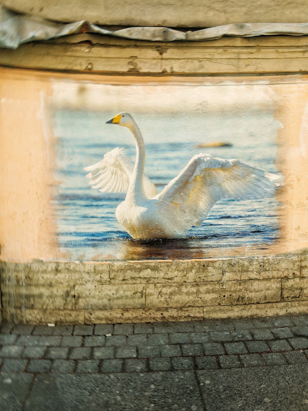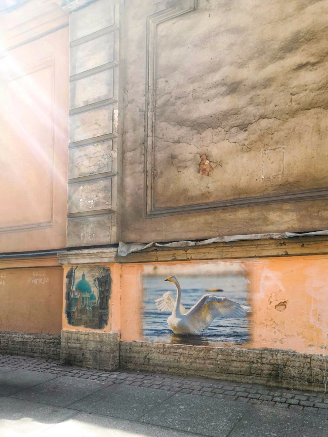 Кстати, лебедь, которого критикуют за китчевость, был сделан мною осмысленно. Да, картинка неудачная, не спорю, мне этот конкретный образ тоже не очень нравится, но я попытался визуально передать, что у искусства нет границ. Рядом стена финского консульства — она чистая, а наша грязная, но красивые работы можно сделать везде. Лебедь в Финляндии — это икона и ему не нужен ни паспорт, ни виза, чтоб улететь куда-то в любую страну».
