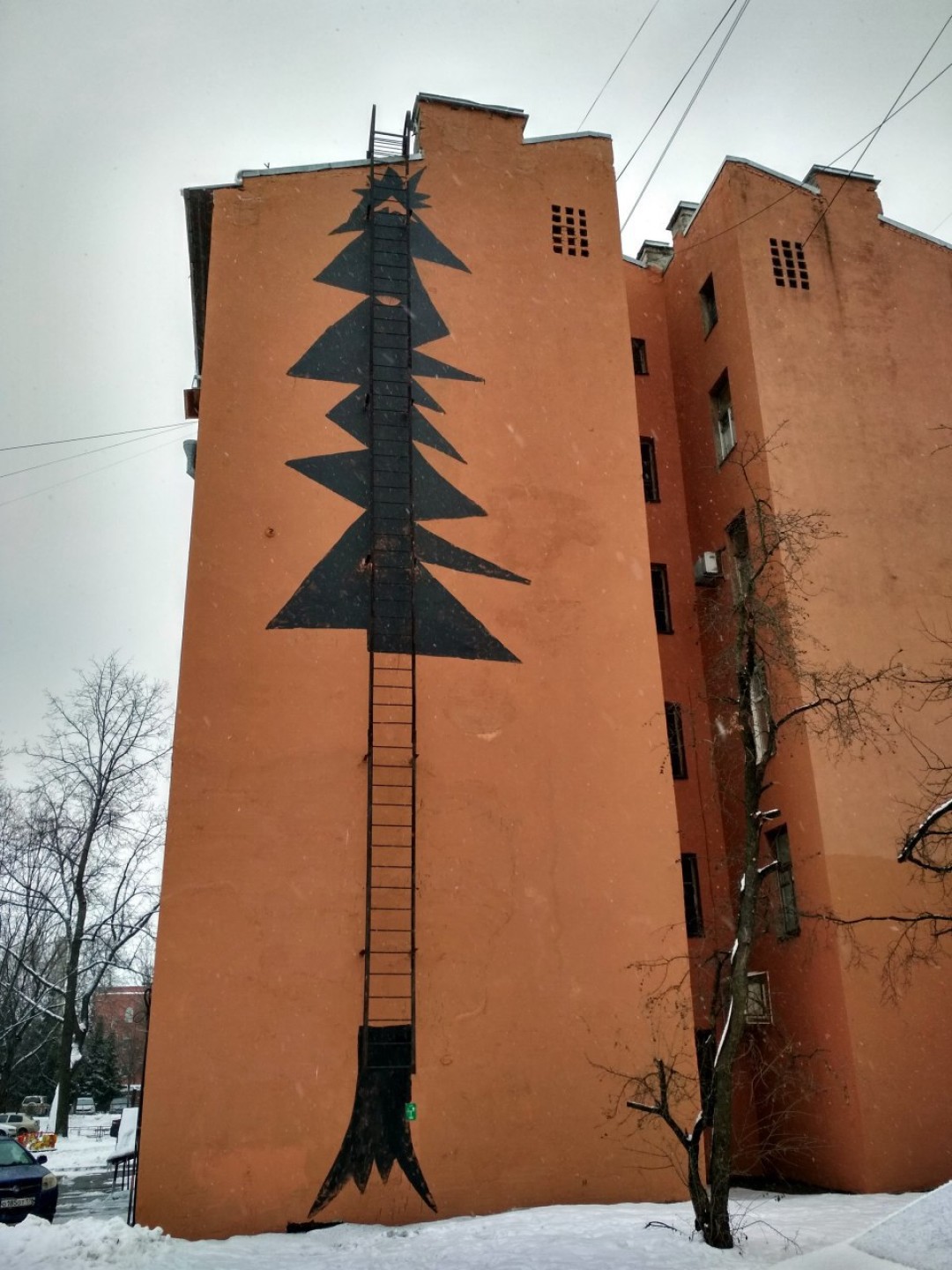 На обычной 12-этажке недалеко от метро «Комендантский проспект» остался артефакт международного фестиваля «Meeting of styles» 2008 года — огромное дерево из иллюстраций и граффити-тегов, которое «вырастили» десятки художников из разных стран. Эта стена — единственная, появившаяся в рамках проекта «Сто легальных стен», о котором райтеры пытались договориться с городскими властями. Постепенно 35-метровый мурал теряет свои краски — причина срочно съездить на проспект Маршала Новикова.