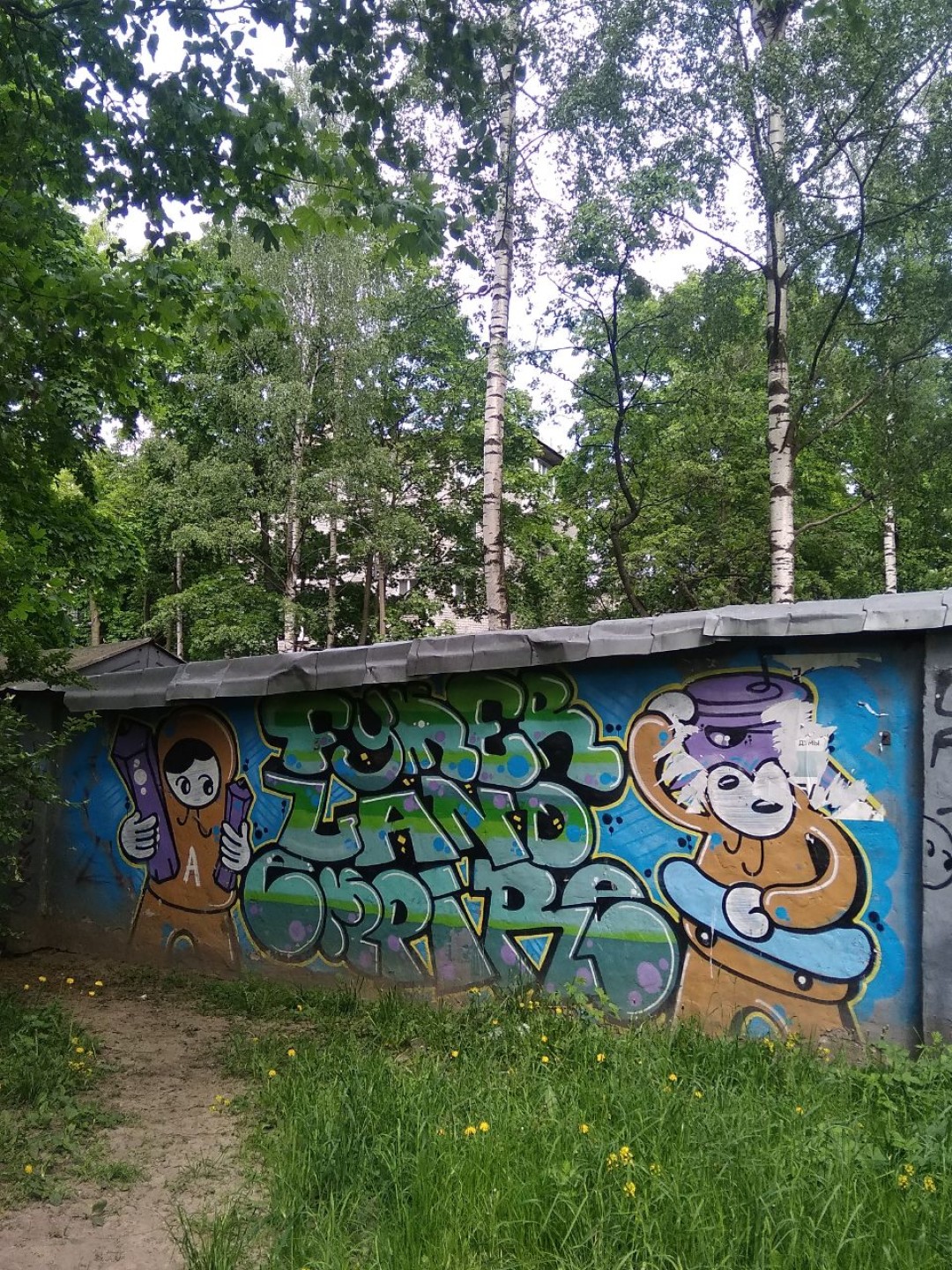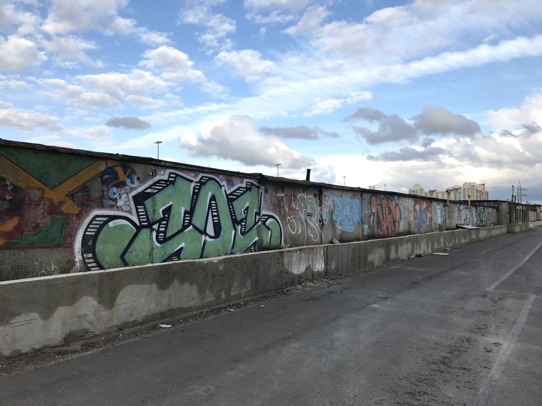 В начале 2000-х гаражи и заборы на северной окраине Петербурга покрылись граффити местных художников и заезжих райтеров — так сложилась стихийная «Стена славы», покрытая тэгами и шрифтовыми композициями разных стилей и уровней мастерства. Спустя 15 лет до этого богом забытого места добрался застройщик, который решил назвать новый жилой комплекс поблизости «Граффити». Правда девелоперы захотели закрасить импровизированный Hall of fame, но куратор Альбина Мотор предложила сберечь «гений места» и памятник петербургской граффити-культуре уличной в первозданном виде.