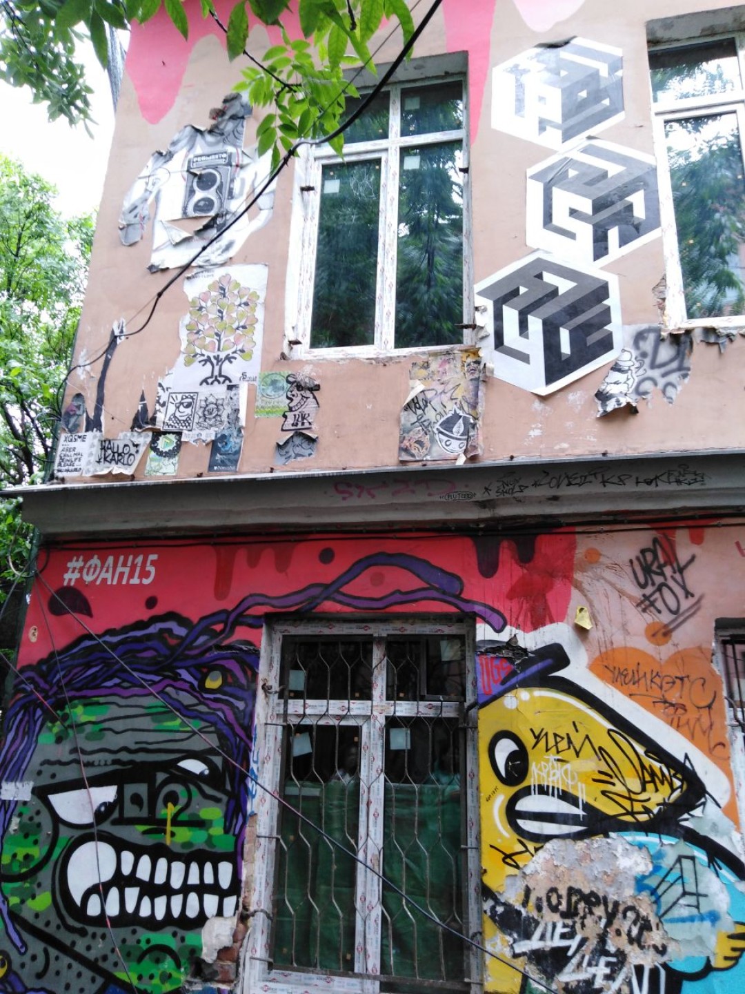 В 2015 году художники Миша Samek и Snap устроили во дворе заброшенного здания на Уральской улице независимый Фестиваль авторских наклеек — выставку стикеров, плакатов и иллюстраций от уличных художников из разных стран мира. До этого фестиваль проходил в закрытых пространствах — в креативном кластере «Четверть» и в Центре современного искусства имени Сергея Курехина (когда он еще работал на Васильевском острове). За несколько дней организаторы расчистили территорию у набережной Смоленки и покрыли стены дома, окна, а также забор наклейками всех форм и размеров, а также граффити и забавными персонажами. Зарубежные авторы присылали свои произведения по почте, а местные создали «экспозицию» в режиме импровизации. Через 4 года основная часть работ естественным образом исчезла, но остатки былого стикер-величия все еще украшают здание. Кстати, регулярно появляются новые рисунки и наклейки, так можно приносить свои.