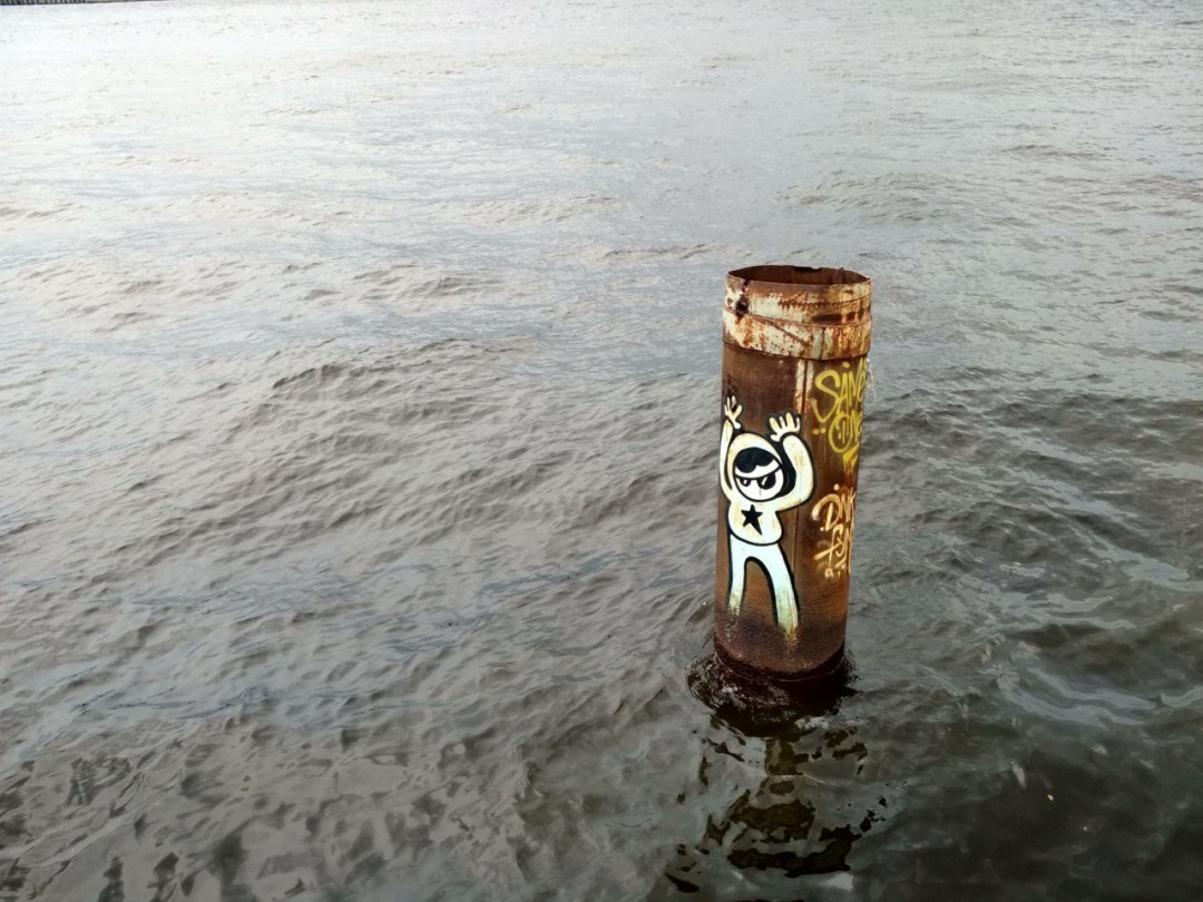 Мультяшный паренек в оранжевом капюшоне, похожий на Кенни из «Южного парка» — главный персонаж уличного художника Миши Samek'a. Встретить его можно не только на стенах Петербурга, но и по всему миру. Если вы гуляете по Васильевскому острову — пройдитесь по набережной реки Смоленки от Уральской улицы до Малой Невы: почти на каждой трубе, выступающей из воды, вы увидите работу Samek'a.