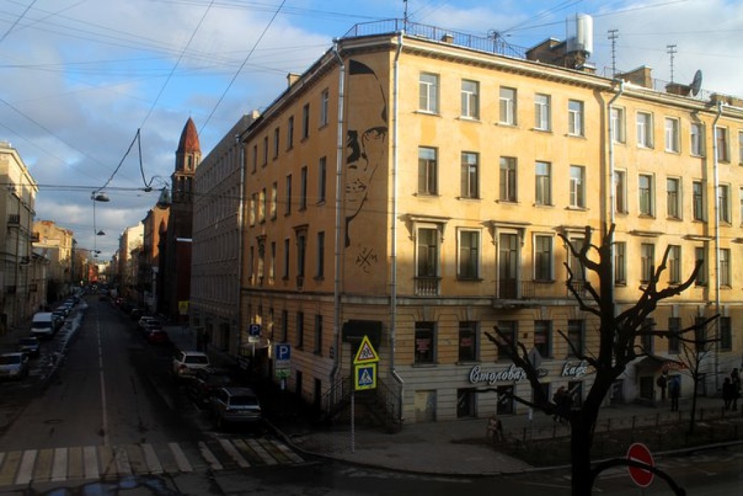 Возможно, самая удачная интервенция стрит-артистов в пространство исторического центра — портрет Даниила Хармса на доме, где он когда-то жил. Уличные художники Паша Кас и Павел Мокич увековечили профиль поэта в 2016 году, в день 74-летней годовщины его смерти. Сами авторы прокомментировали творение так: «Улица Маяковского в Санкт-Петербурге знаменита двумя адресами: здесь жил Владимир Маяковский, и здесь жил Даниил Хармс. Первый — громогласный голос революции, любимец миллионов и увековеченный еще при жизни. И — Хармс.