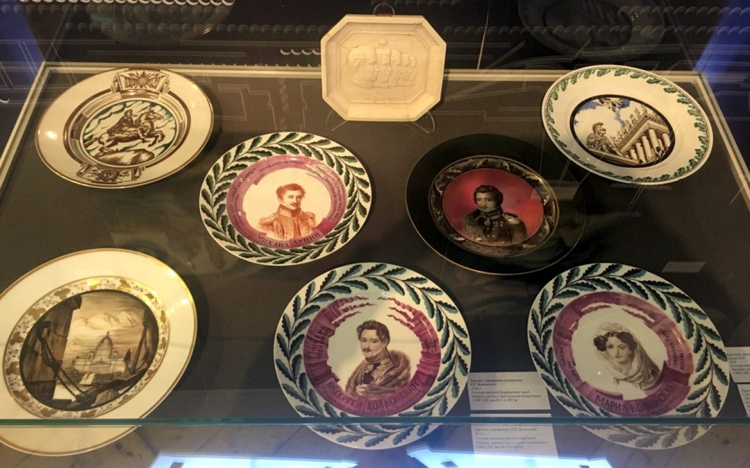 К моменту национализации на складах осталось большое количество «белья» — чистых белых тарелок без росписи. Однако все эти предметы были уже промаркированы. На тыльной стороне их донец стояла печать николаевского времени, что делало их непригодными для использования в рамках новой идеологии. При этом советская власть рассматривала продукцию завода как потенциальный способ массовой агитации, поэтому было решено не пускать заготовки в расход. Место со старой маркировкой закрашивалось, и на ее место ставилась новая — серп, молот и шестеренка. Печати николаевского времени исчезли, зато изображения революционных героев тех лет украсили посуду. И персоналии пяти декабристов отлично подходили на эту роль.